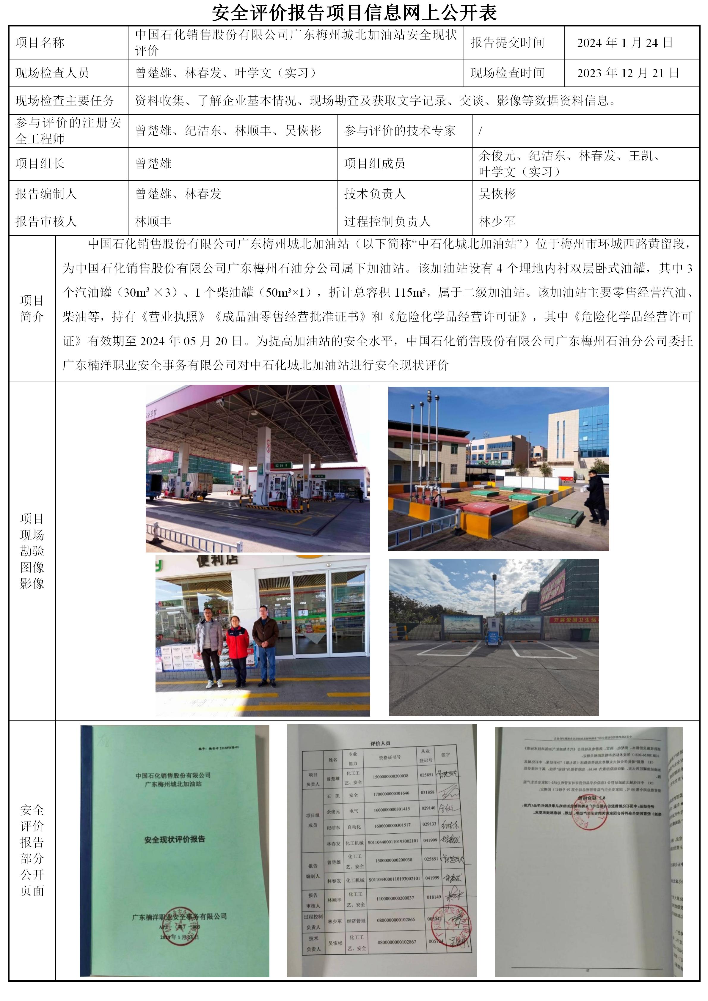 中国石化销售股份有限公司广东梅州城北加油站安全现状评价