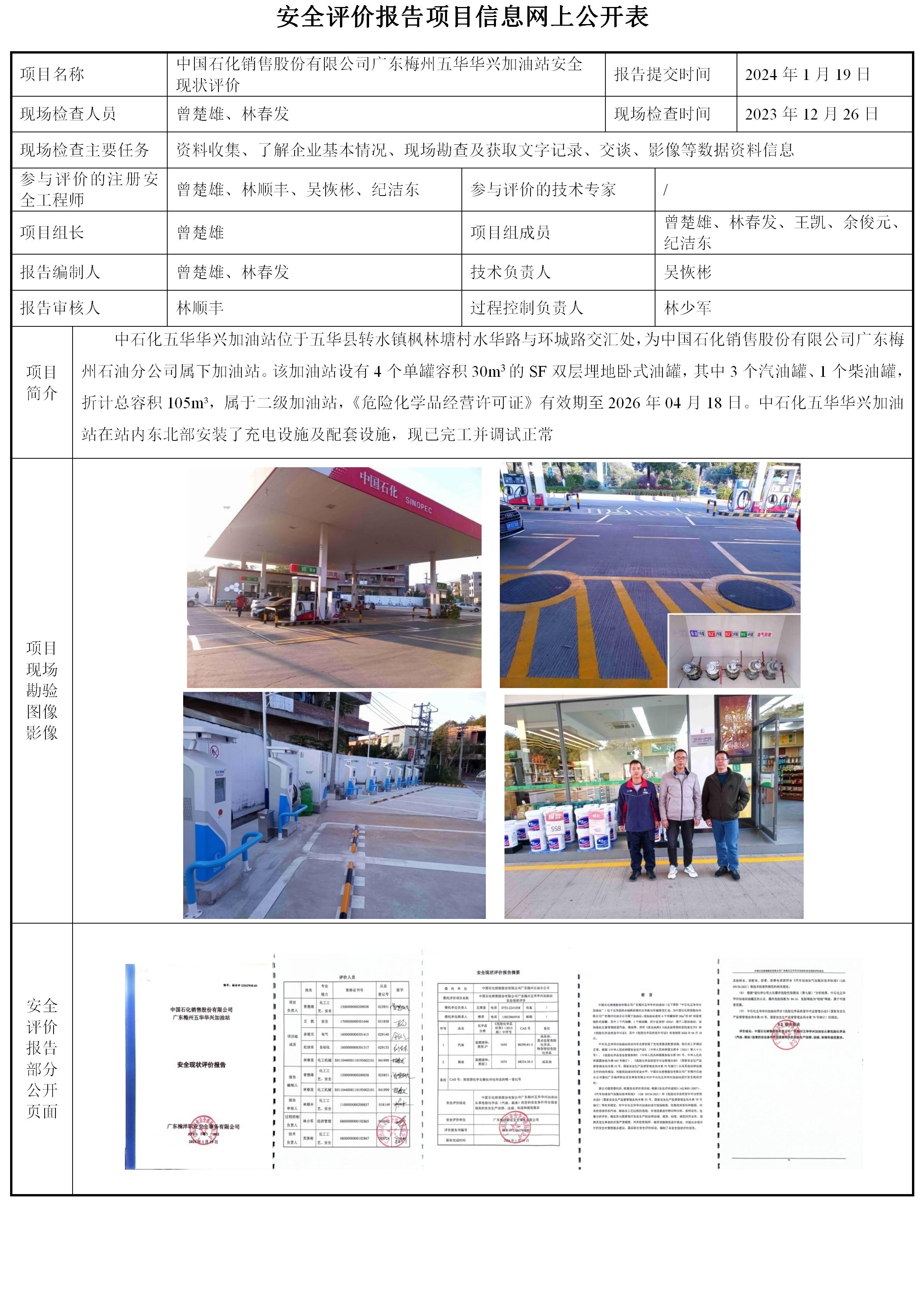 中国石化销售股份有限公司广东梅州五华华兴加油站安全现状评价