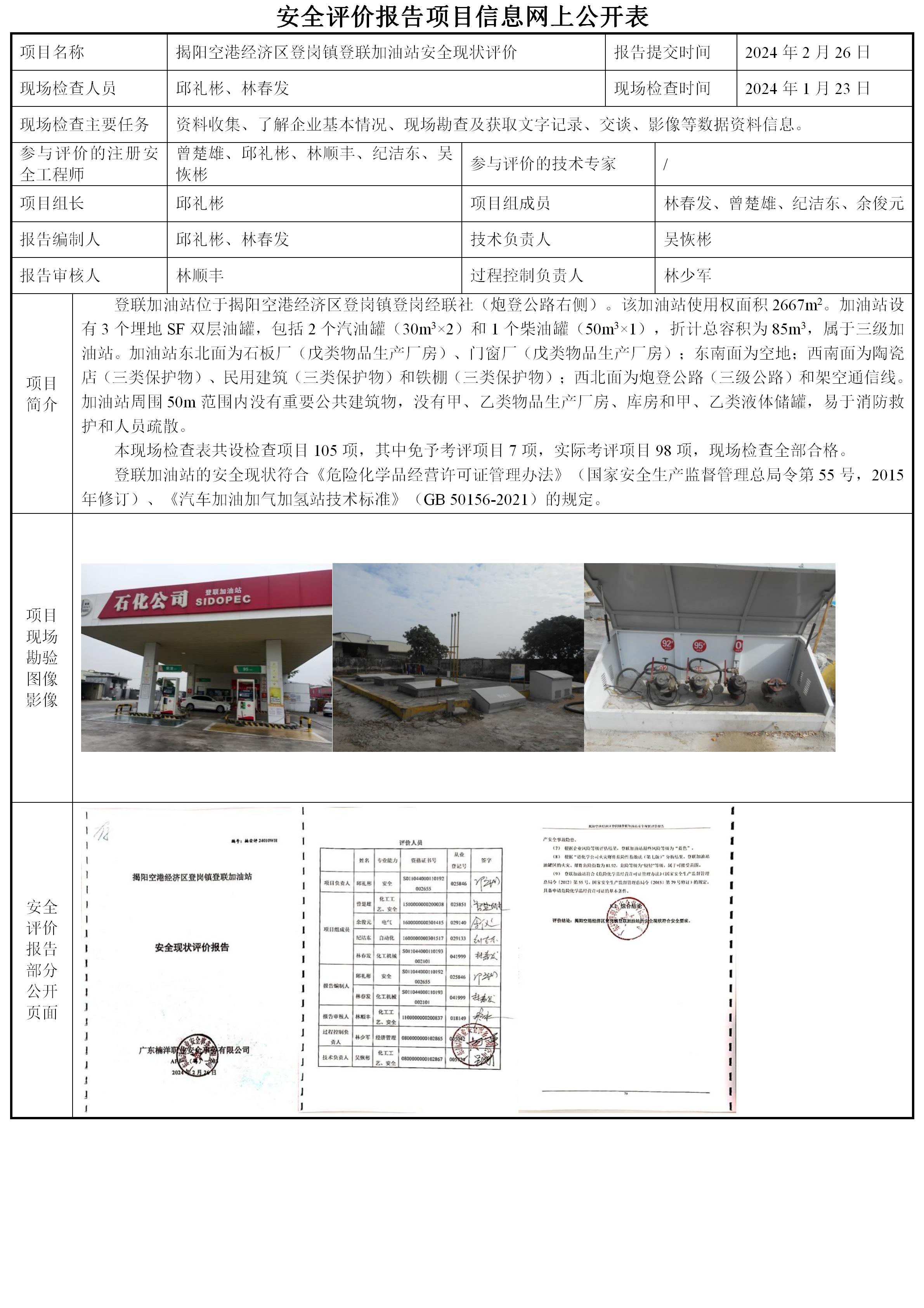 揭阳空港经济区登岗镇登联加油站安全现状评价