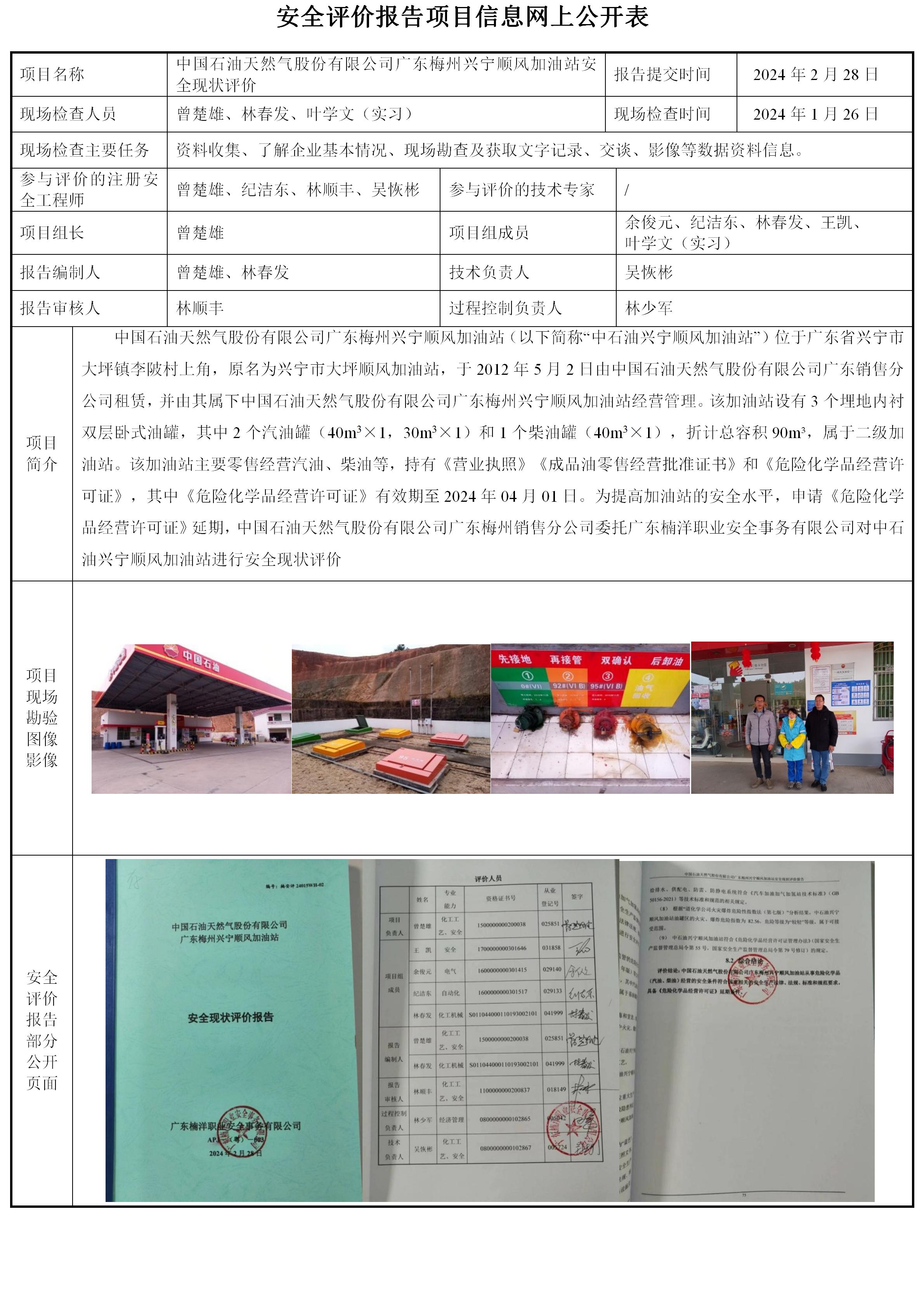 中国石油天然气股份有限公司广东梅州兴宁顺风加油站安全现状评价