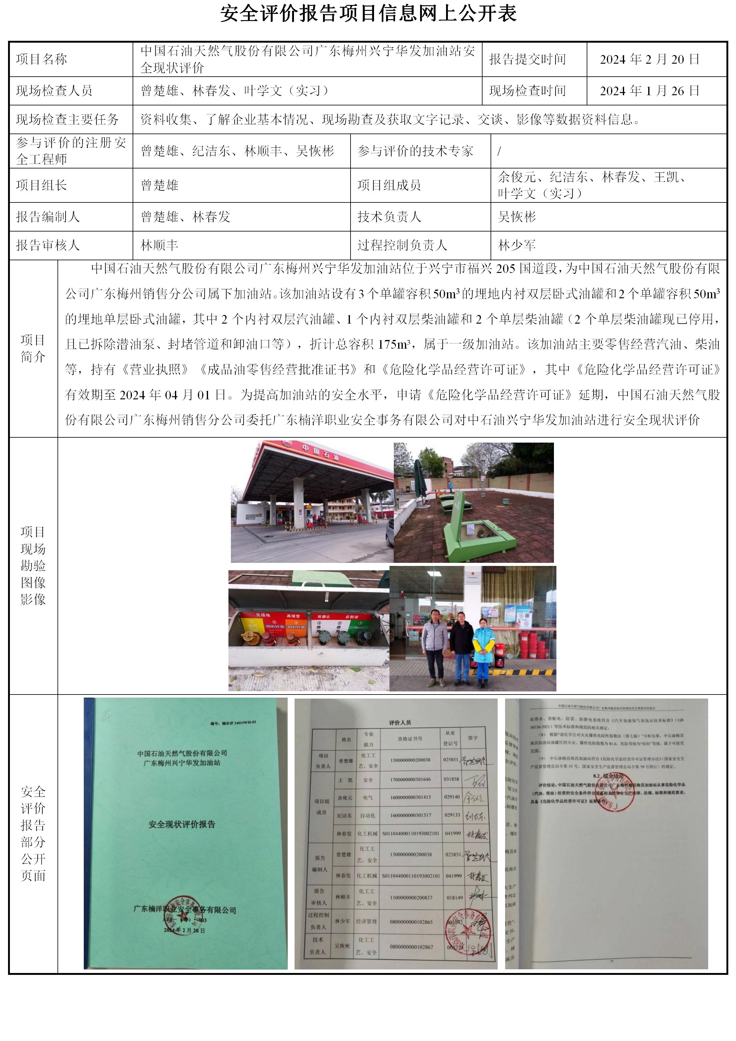 中国石油天然气股份有限公司广东梅州兴宁华发加油站安全现状评价
