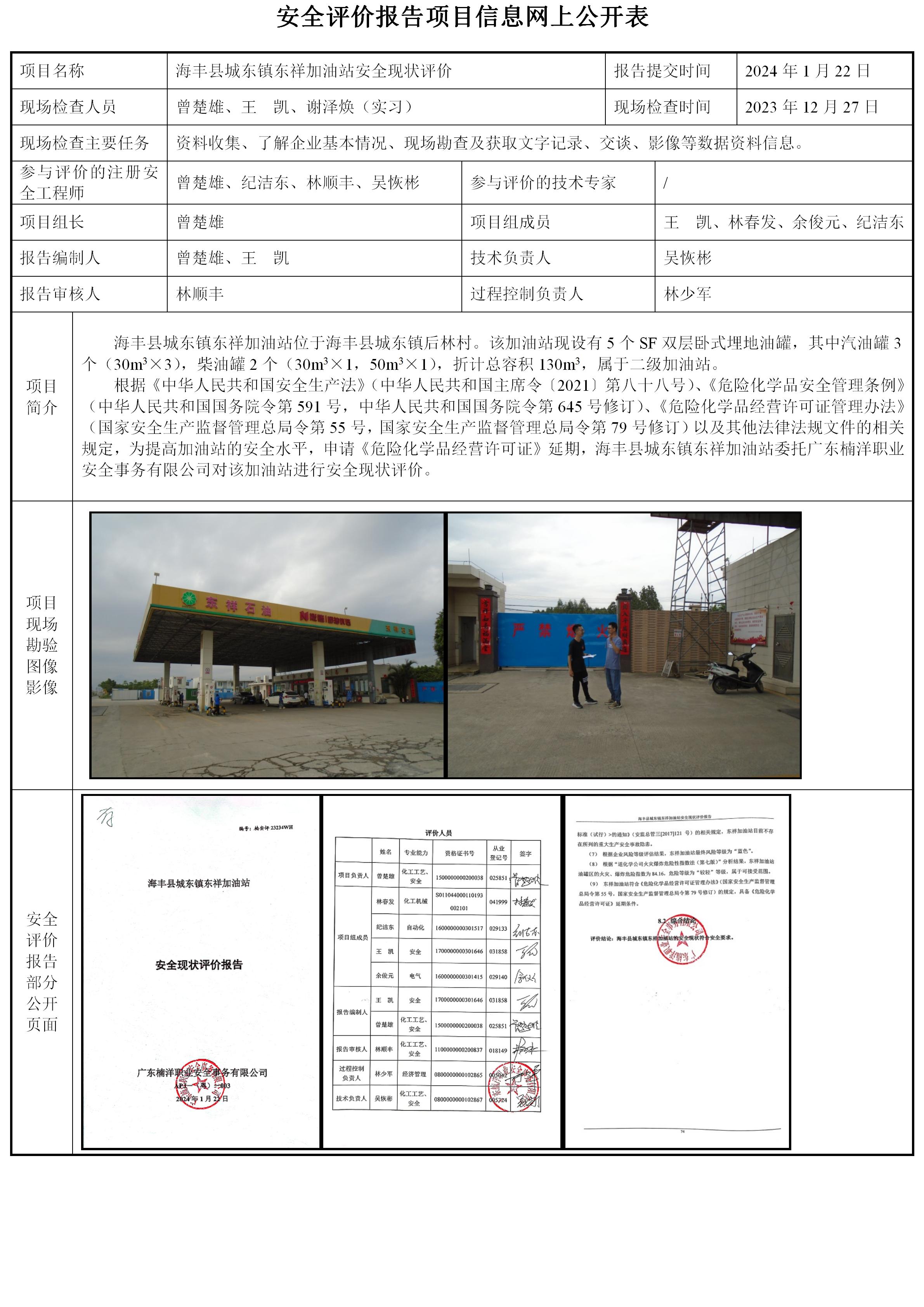 海丰县城东镇东祥加油站安全现状评价