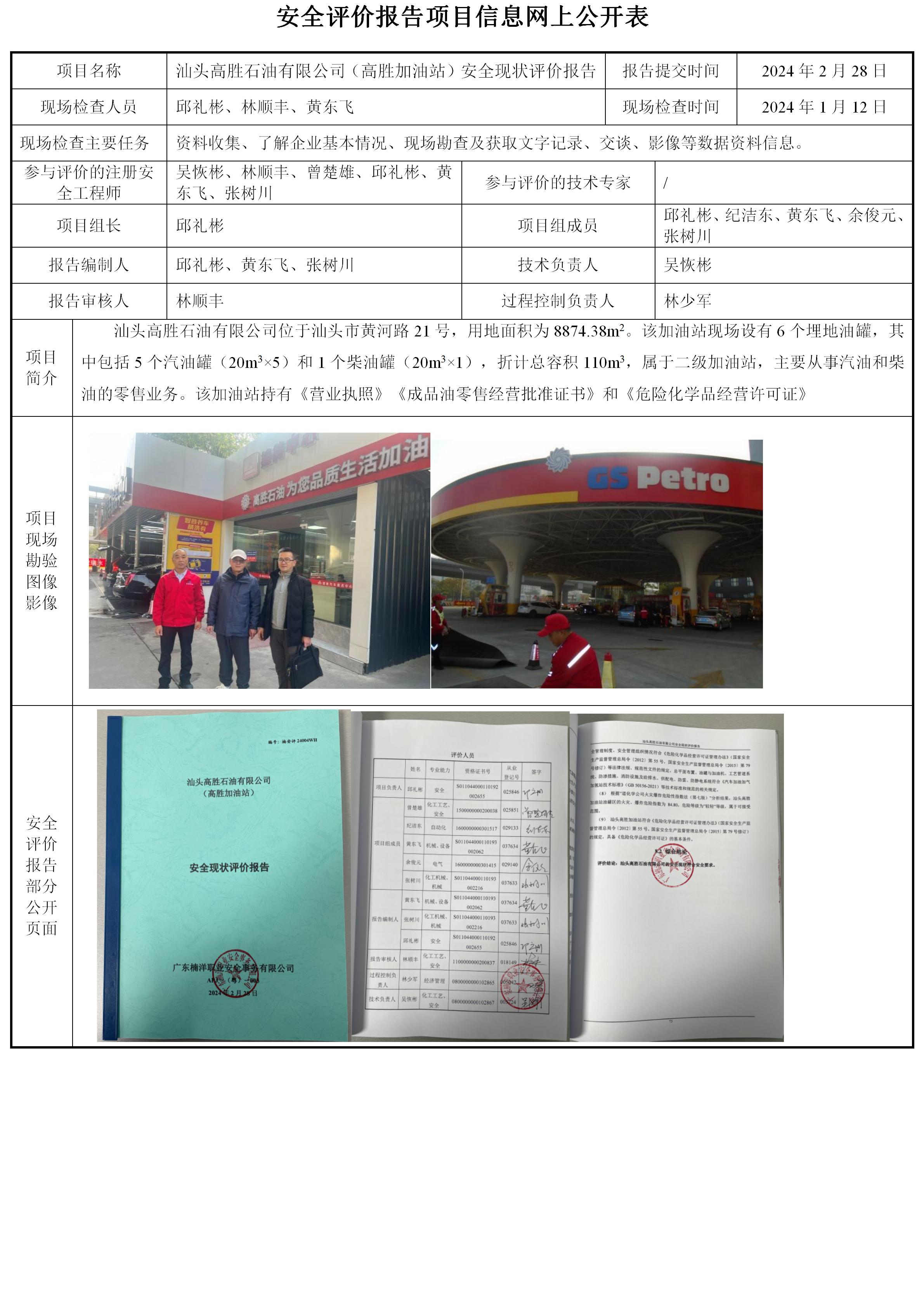 汕头高胜石油有限公司(高胜加油站)安全现状评价