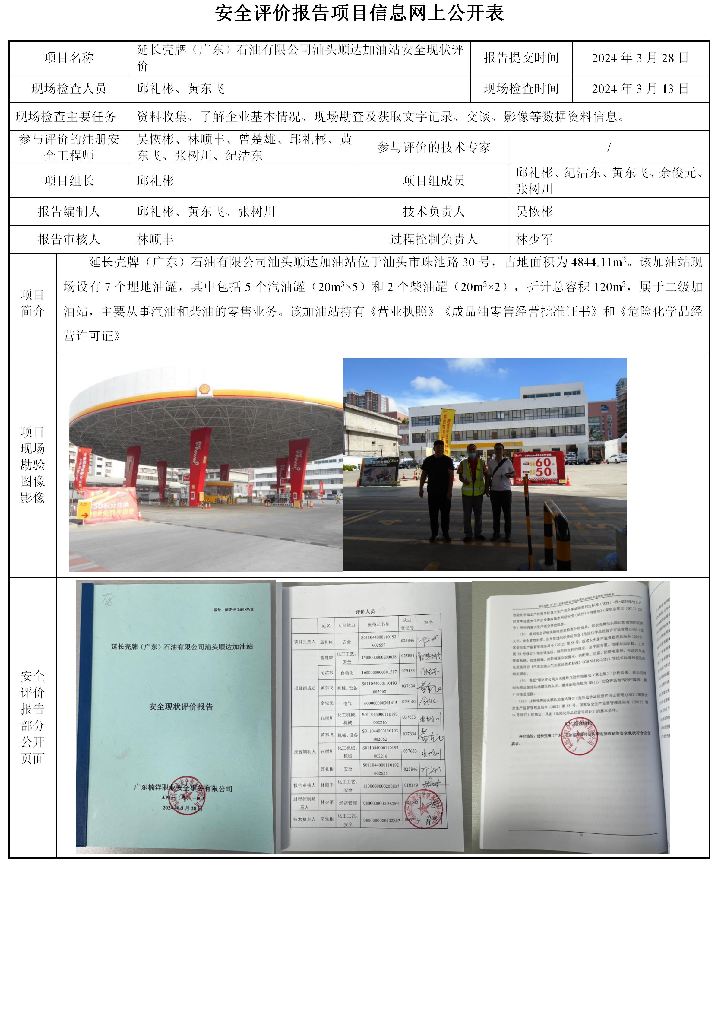 延长壳牌(广东)石油有限公司汕头顺达加油站安全现状评价
