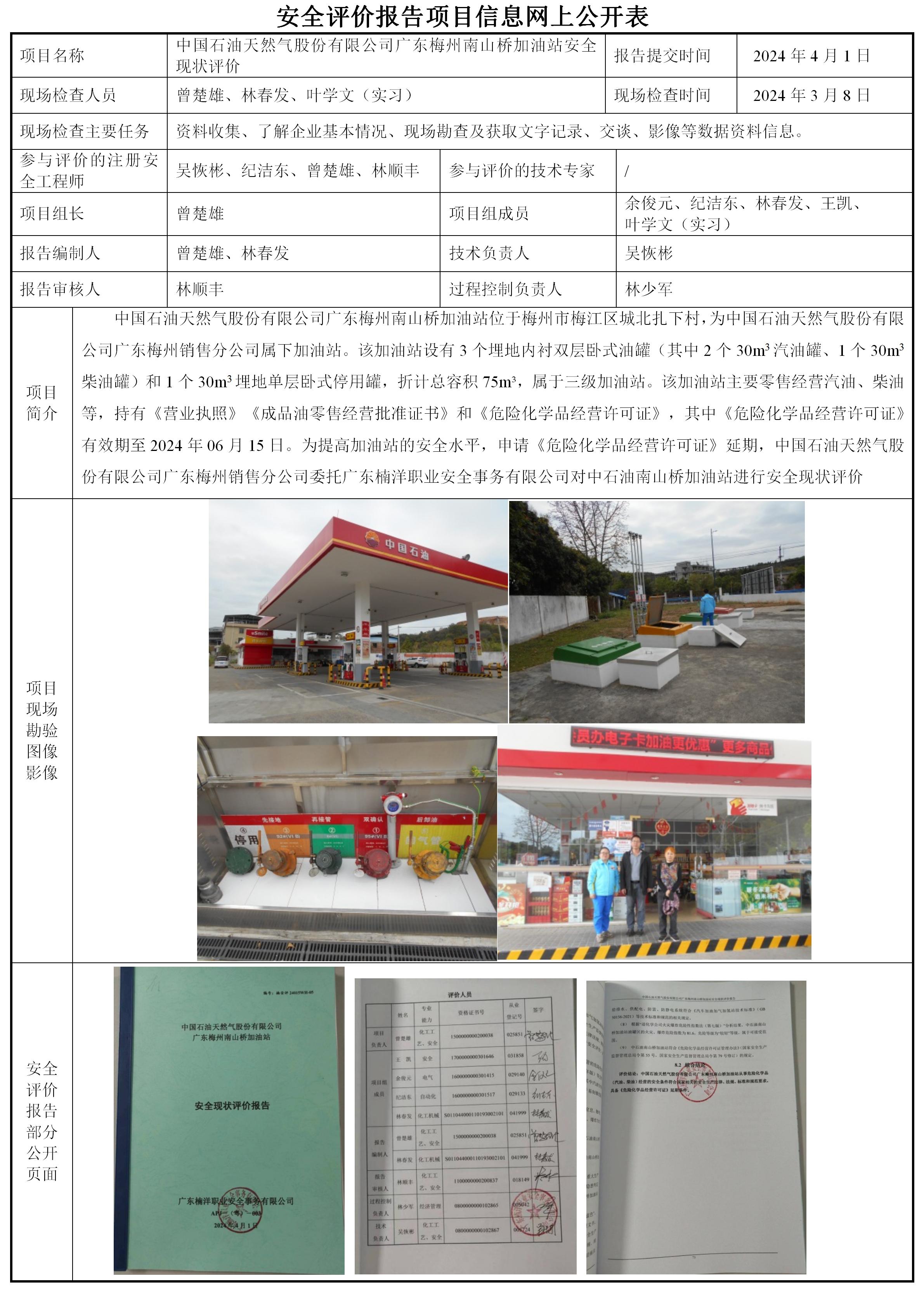 中国石油天然气股份有限公司广东梅州南山桥加油站安全现状评价