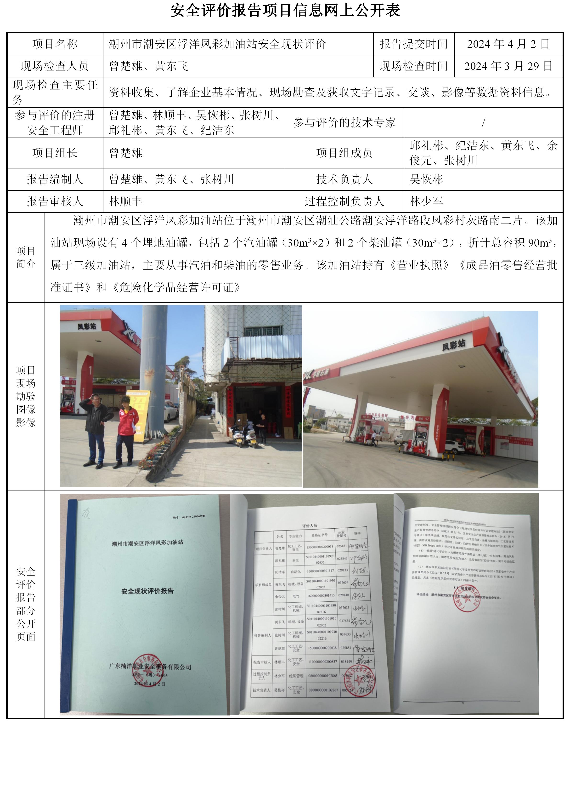 潮州市潮安区浮洋凤彩加油站安全现状评价