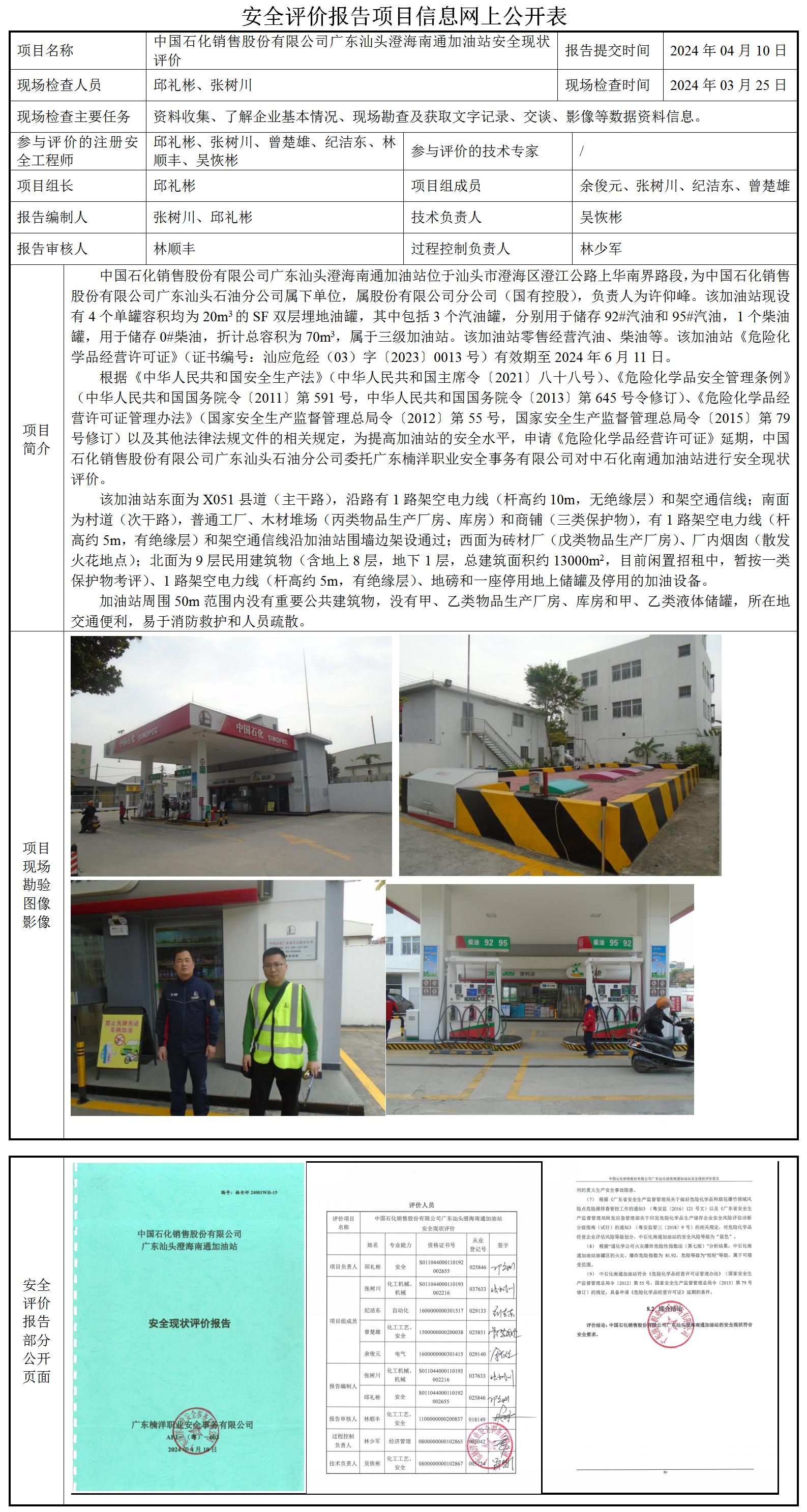 中国石化销售股份有限公司广东汕头澄海南通加油站安全现状评价