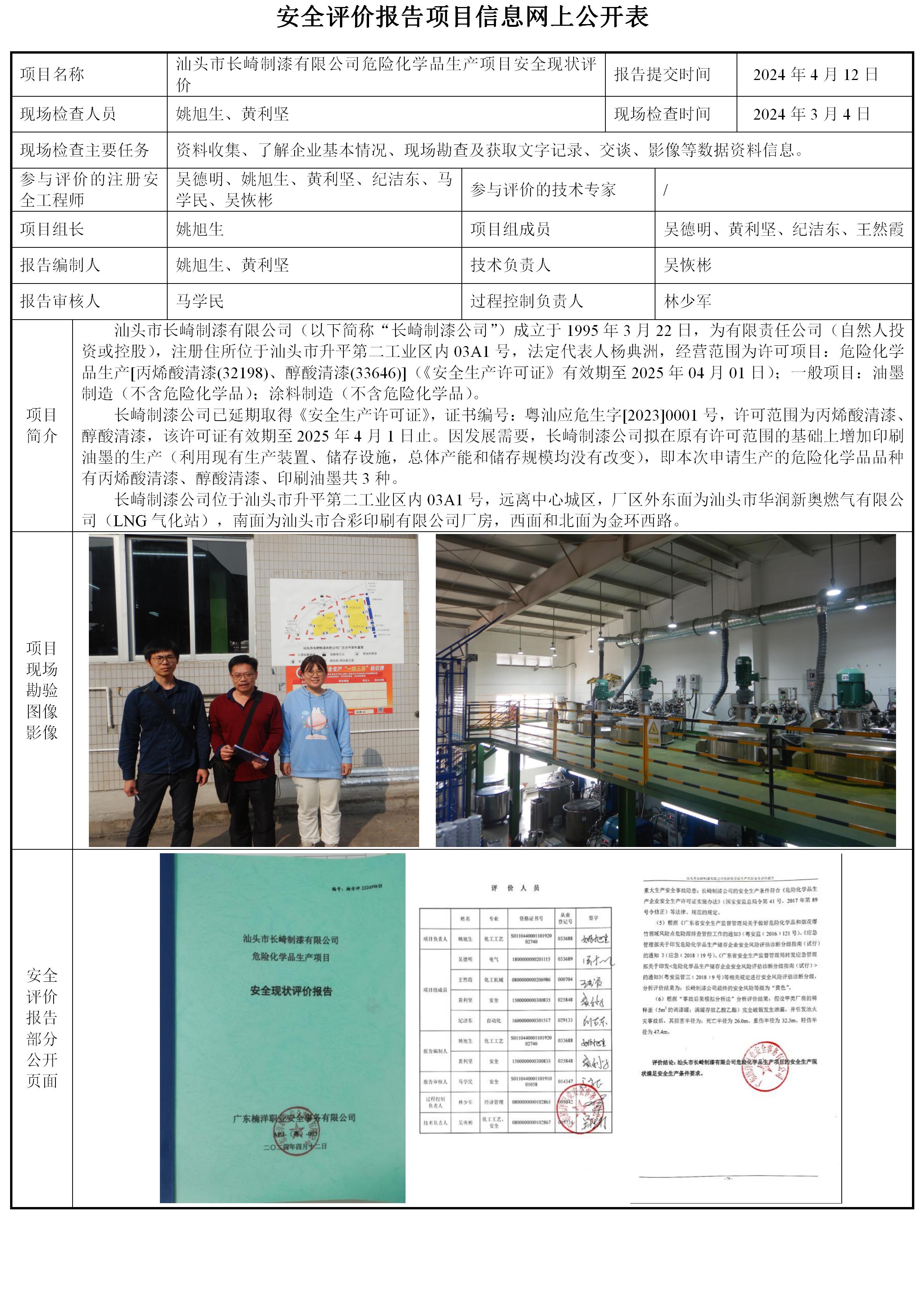 汕头市长崎制漆有限公司危险化学品生产项目安全现状评价
