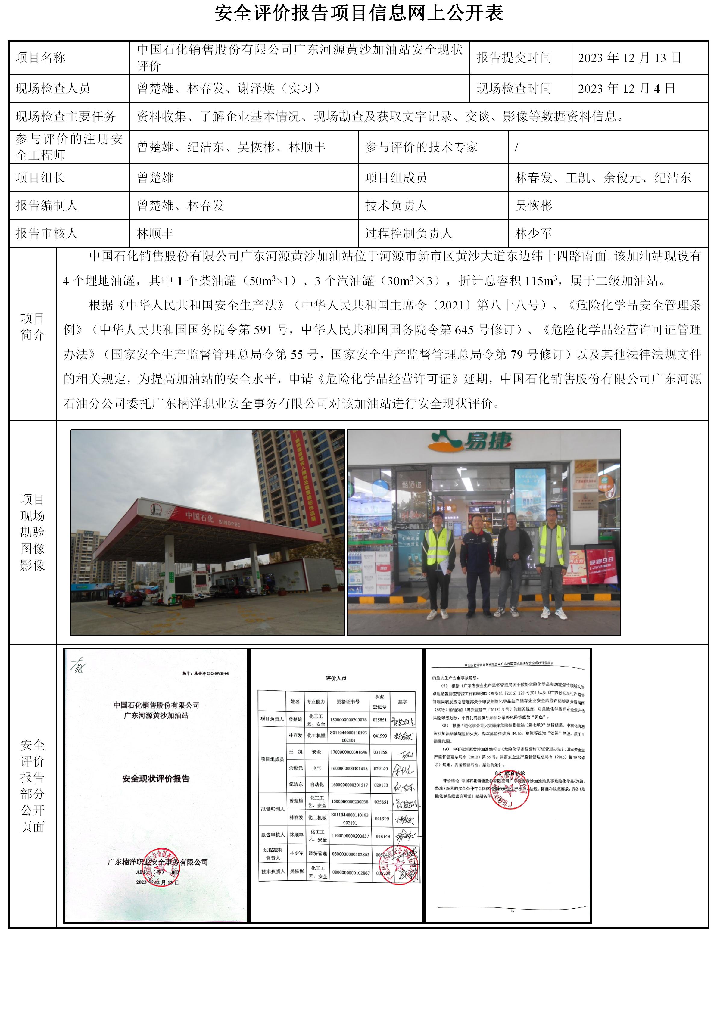 中国石化销售股份有限公司广东河源黄沙加油站安全现状评价