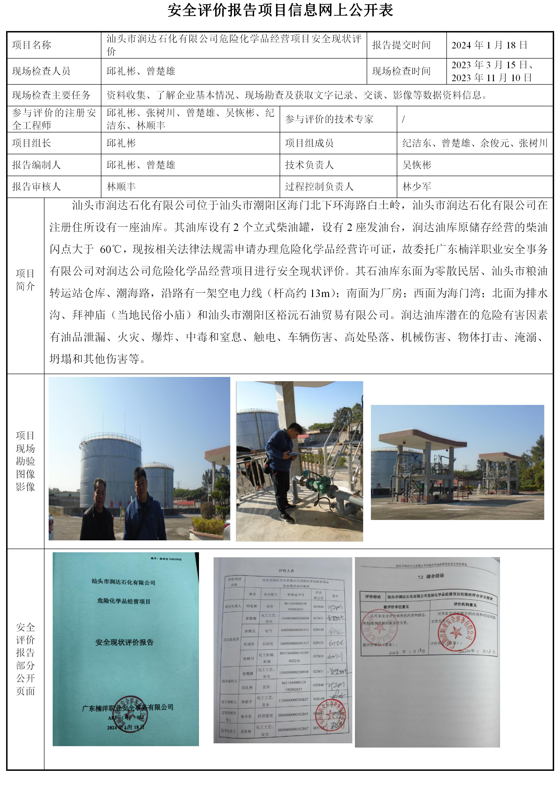 汕头市润达石化有限公司危险化学品经营项目安全现状评价