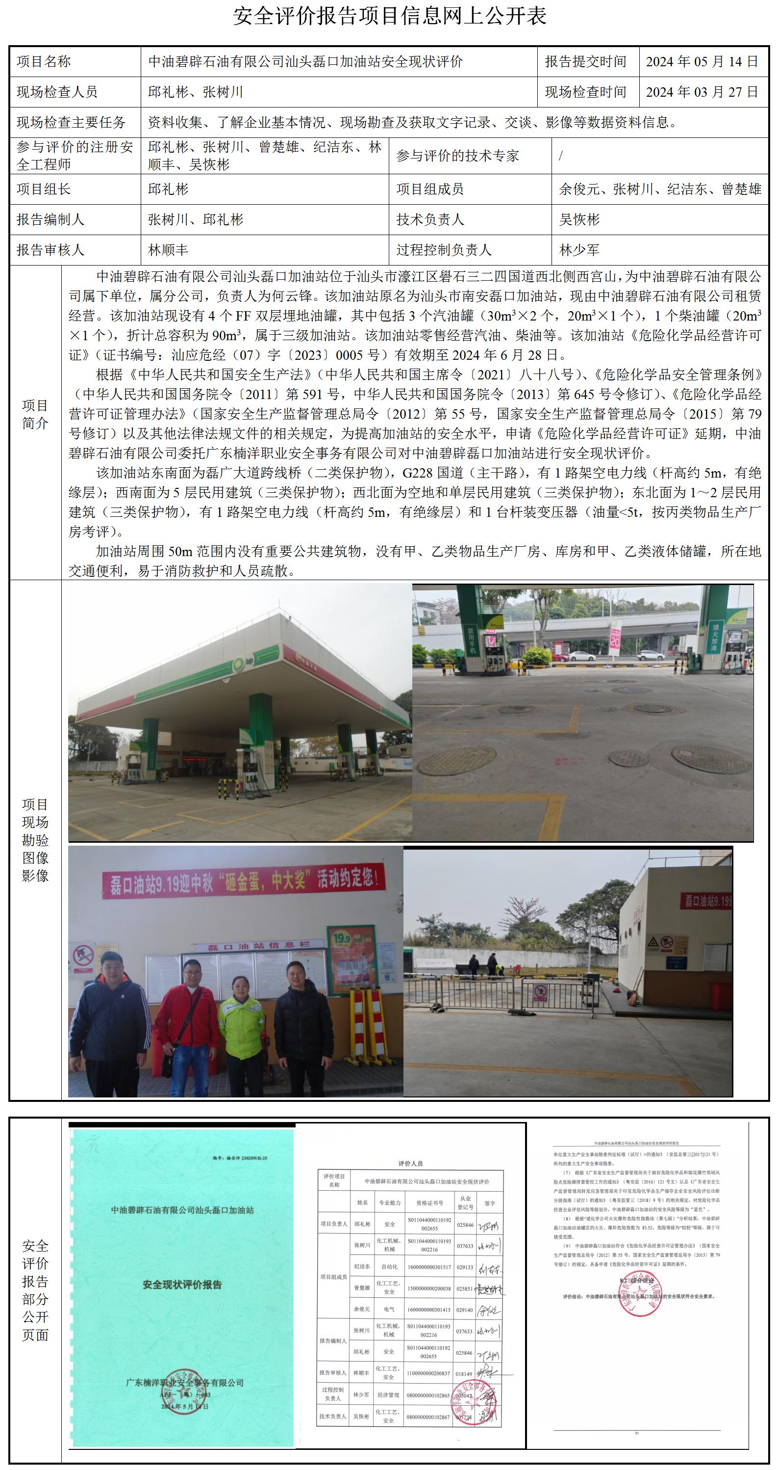 中油碧辟石油有限公司汕头磊口加油站安全现状评价