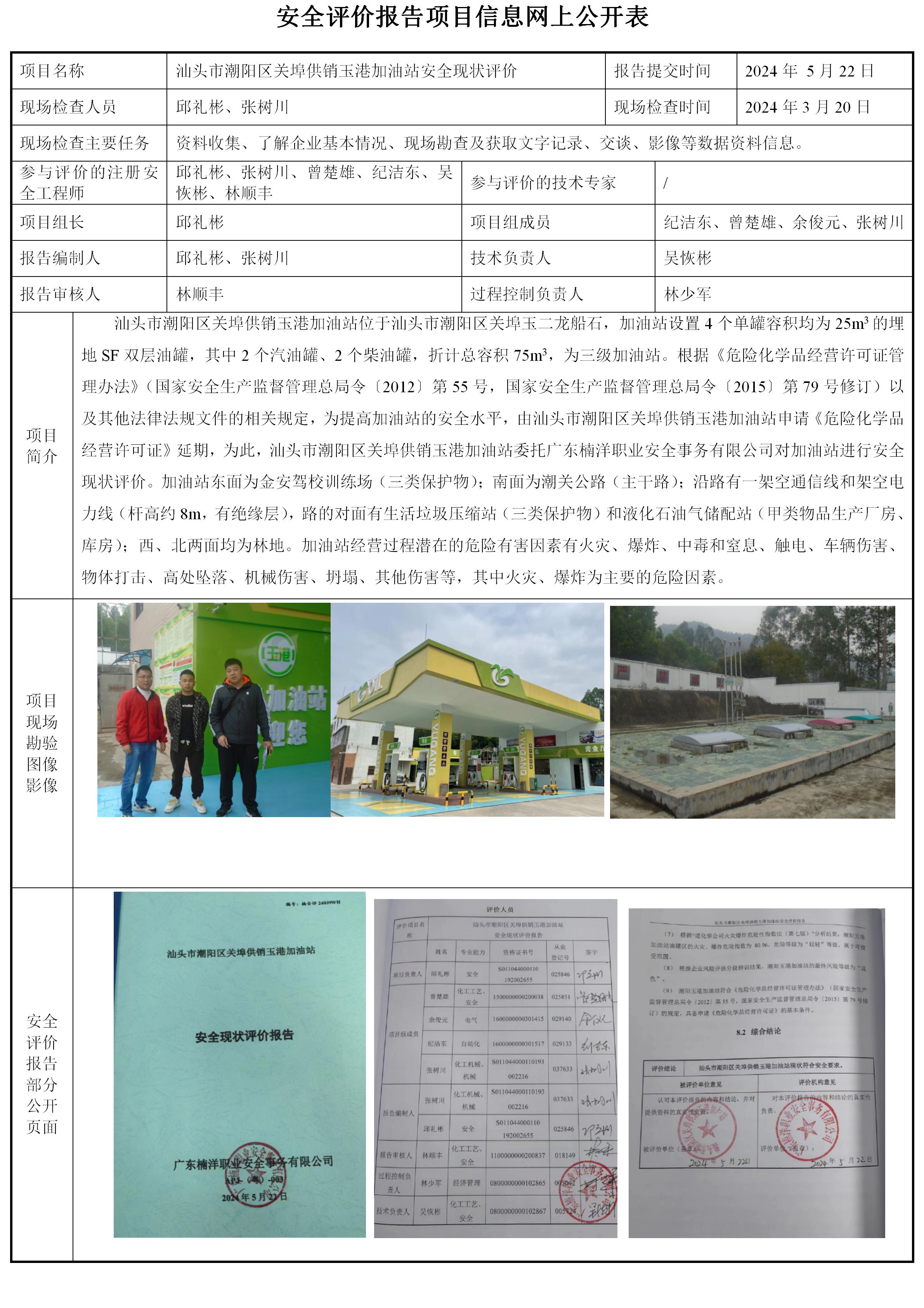 汕头市潮阳区关埠供销玉港加油站安全现状评价