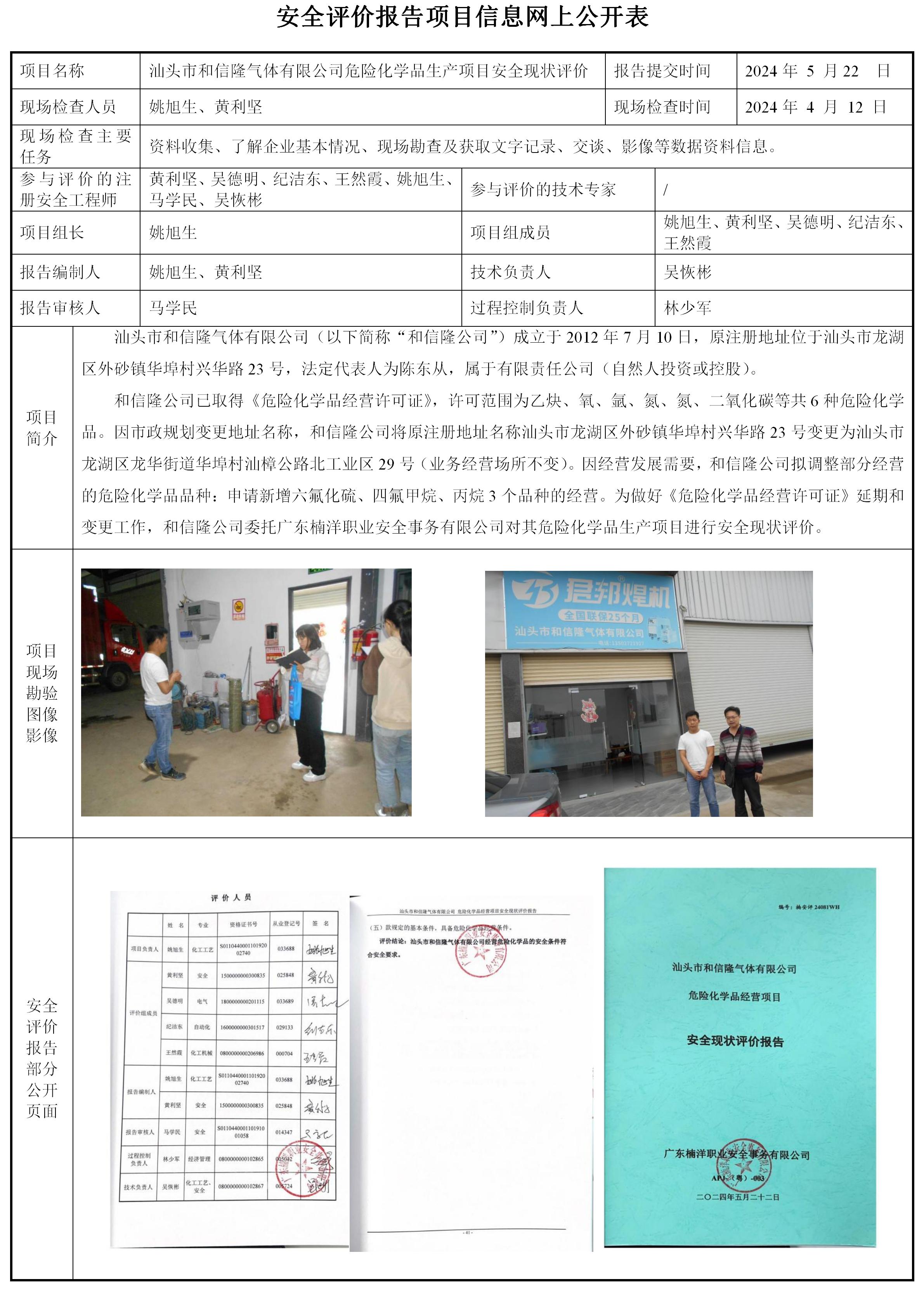 汕头市和信隆气体有限公司危险化学品经营项目安全现状评价