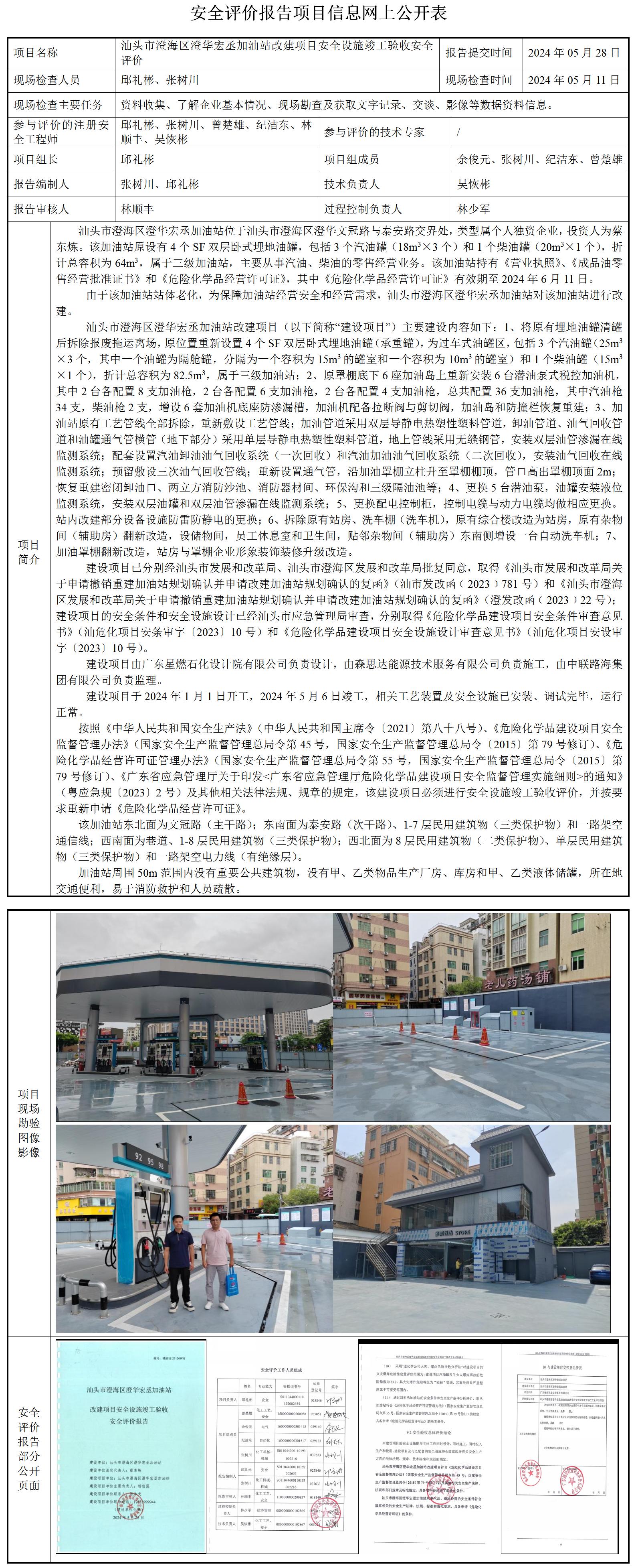 汕头市澄海区澄华宏丞加油站改建项目安全设施竣工验收安全评价