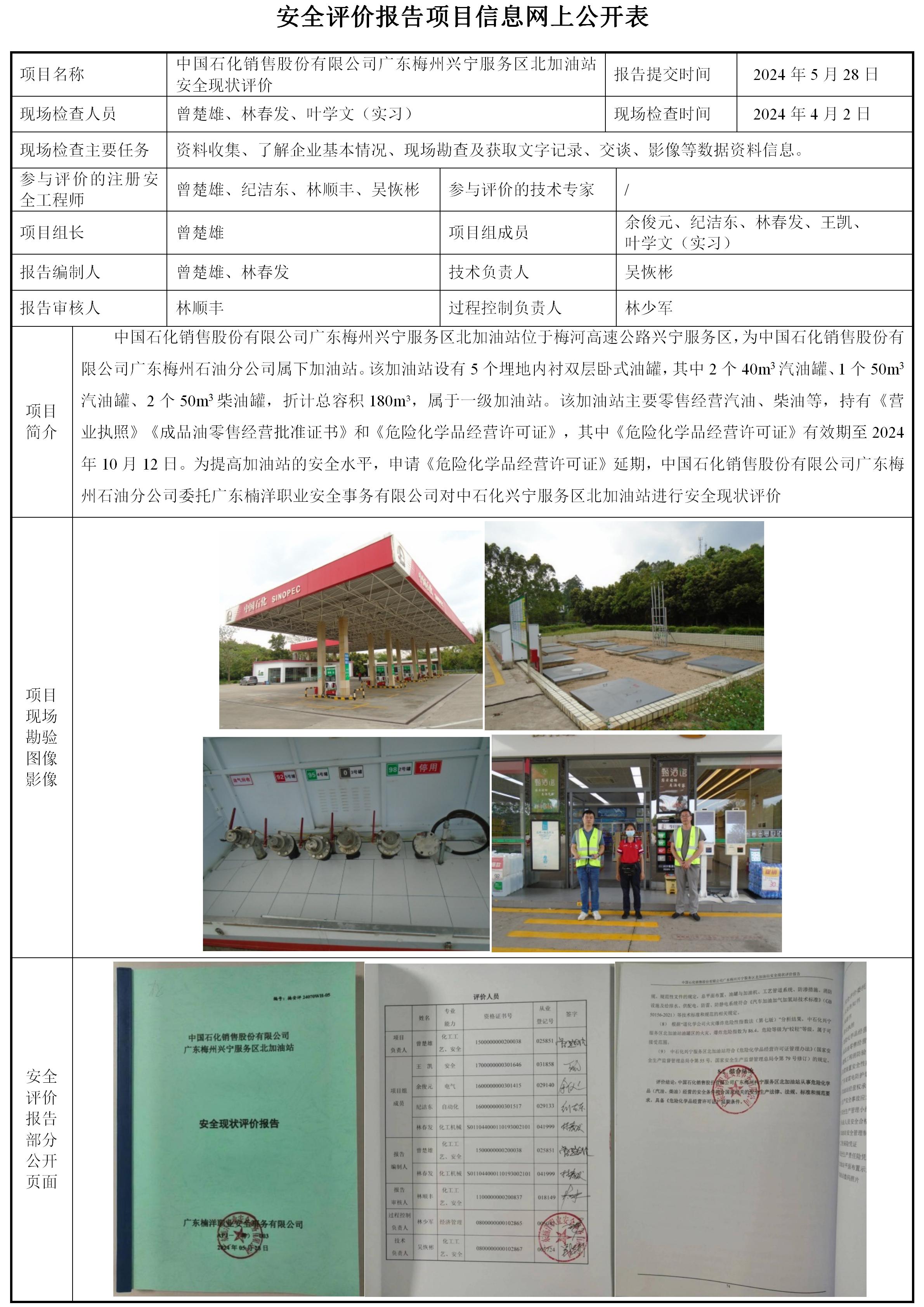 中国石化销售股份有限公司广东梅州兴宁服务区北加油站安全现状评价
