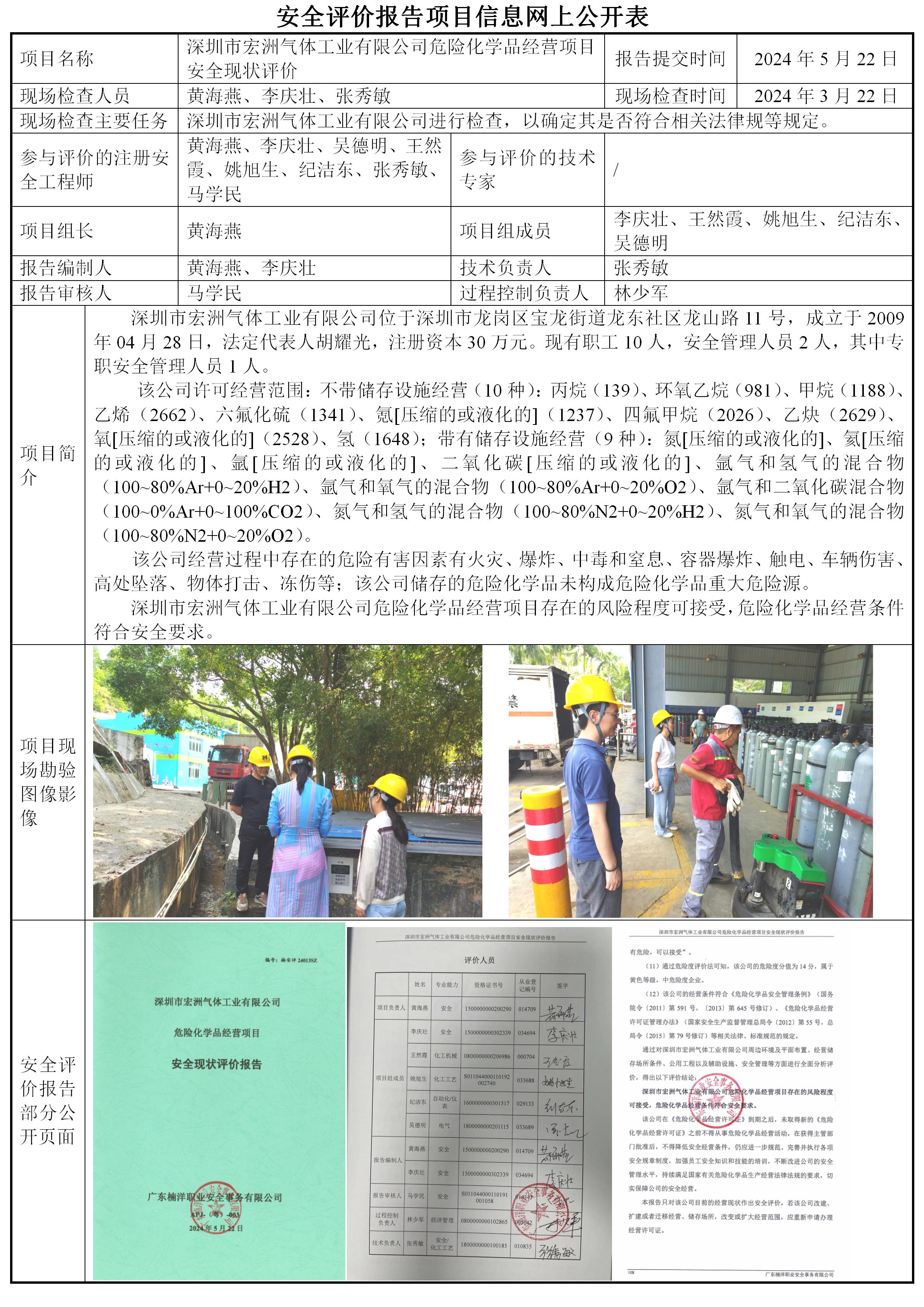深圳市宏洲气体工业有限公司危险化学品经营项目安全现状评价