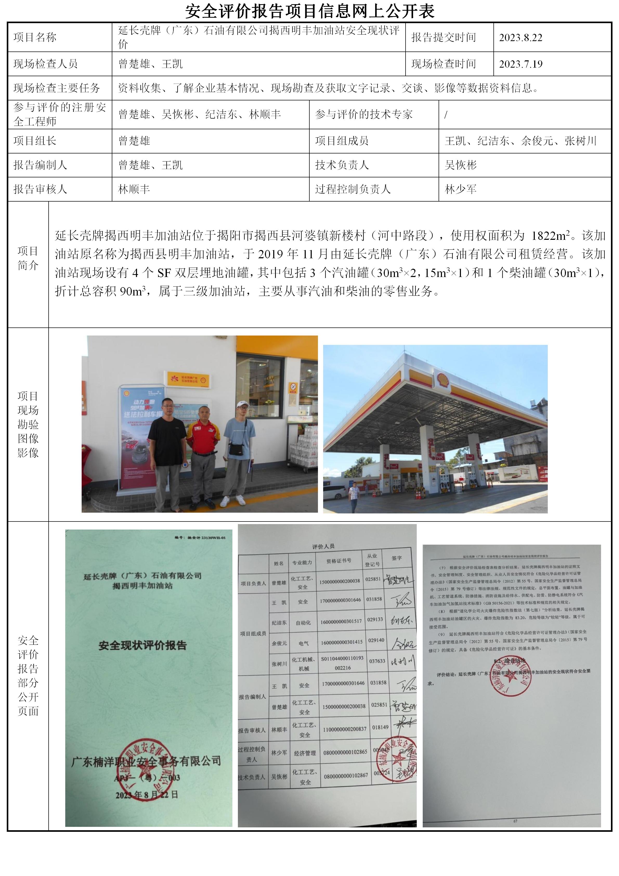 延长壳牌(广东)石油有限公司揭西明丰加油站安全现状评价