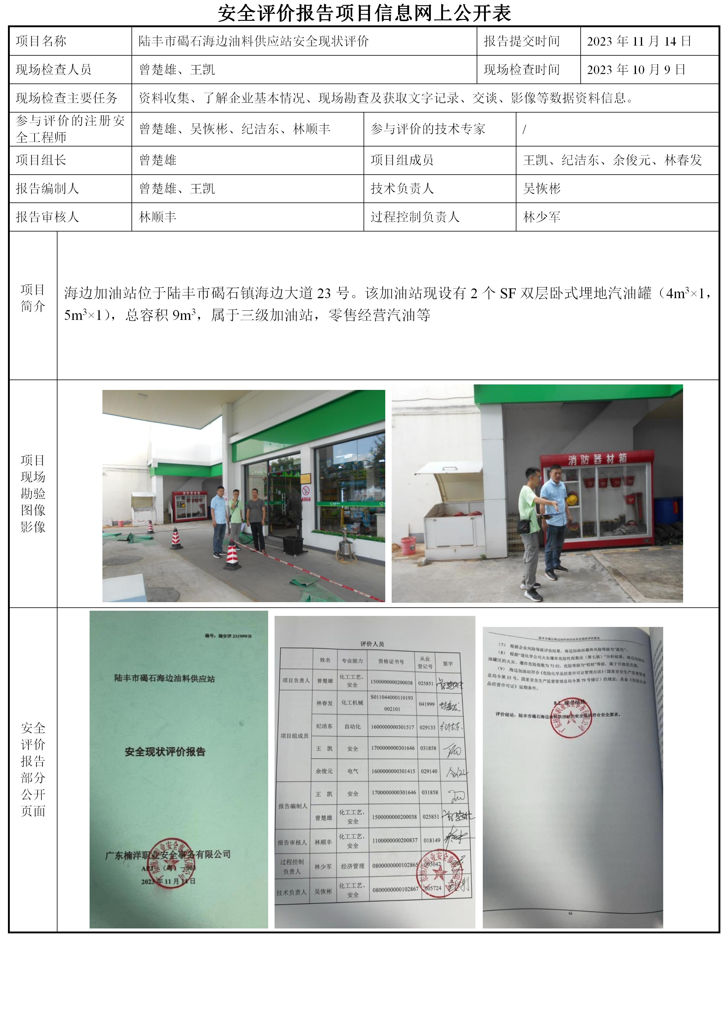 中国石化销售股份有限公司广东汕尾陆丰内湖加油站安全现状评价