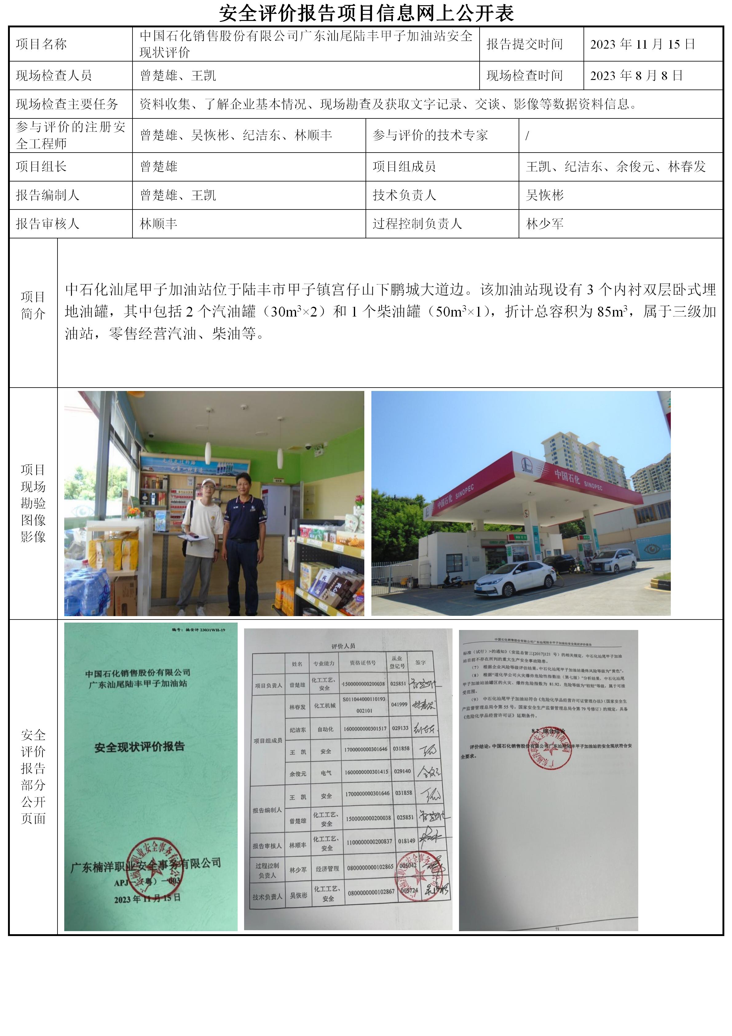 中国石化销售股份有限公司广东汕尾陆丰甲子加油站安全现状评价