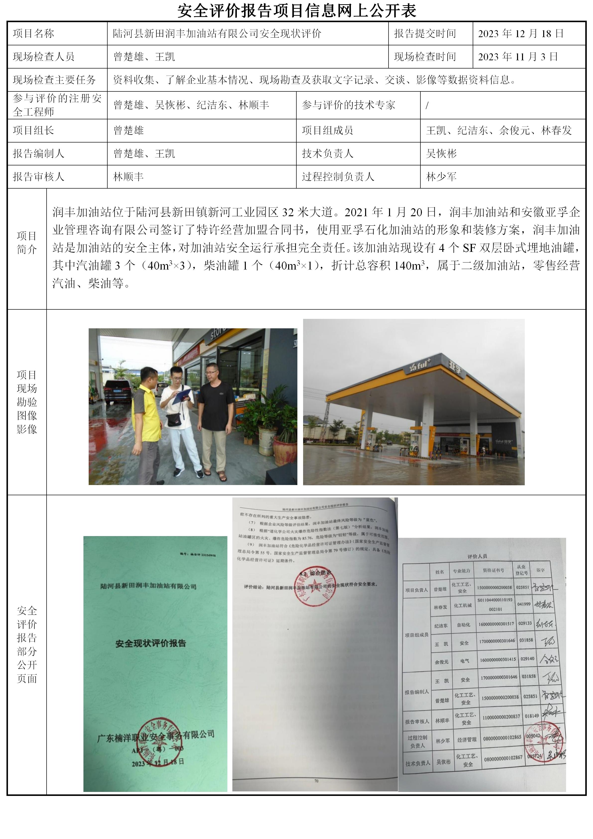 中国石化销售股份有限公司广东汕尾陆丰甲子加油站安全现状评价
