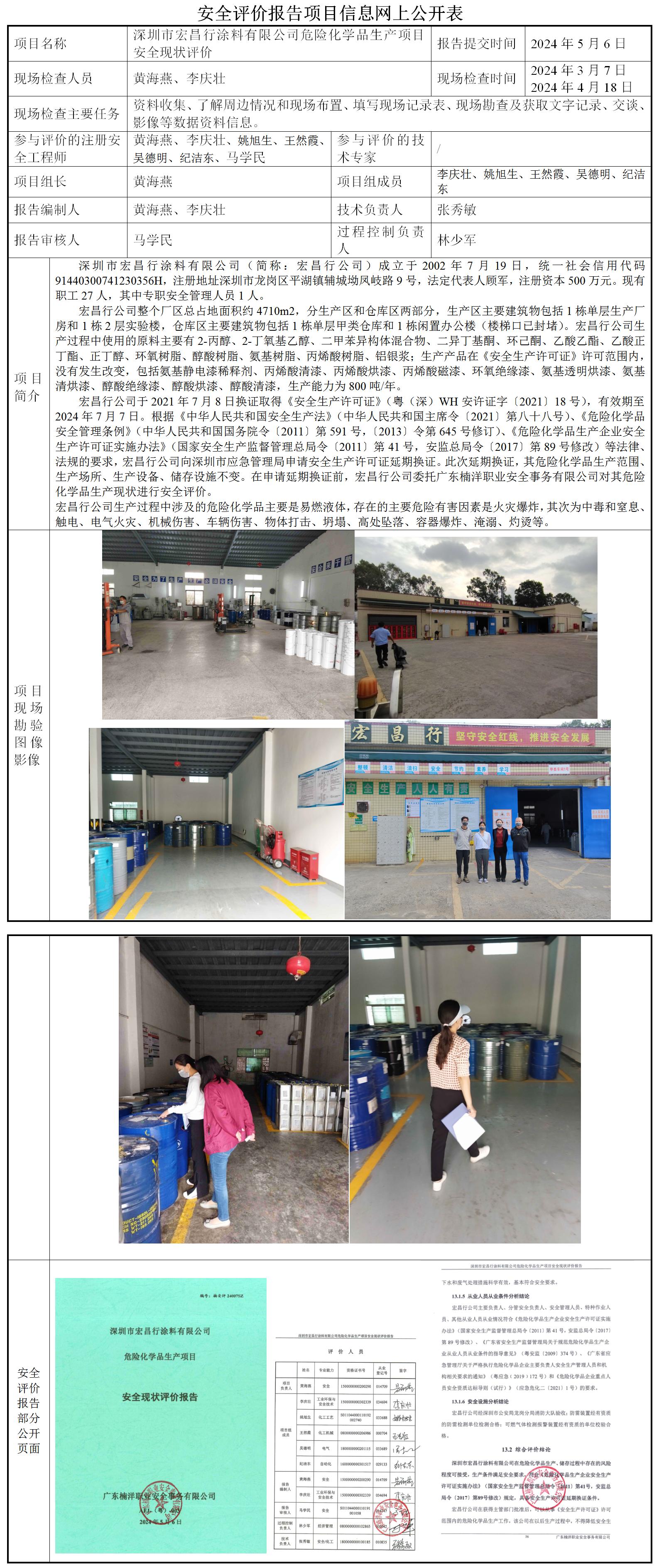 深圳市宏昌行涂料有限公司危险化学品生产项目安全现状评价