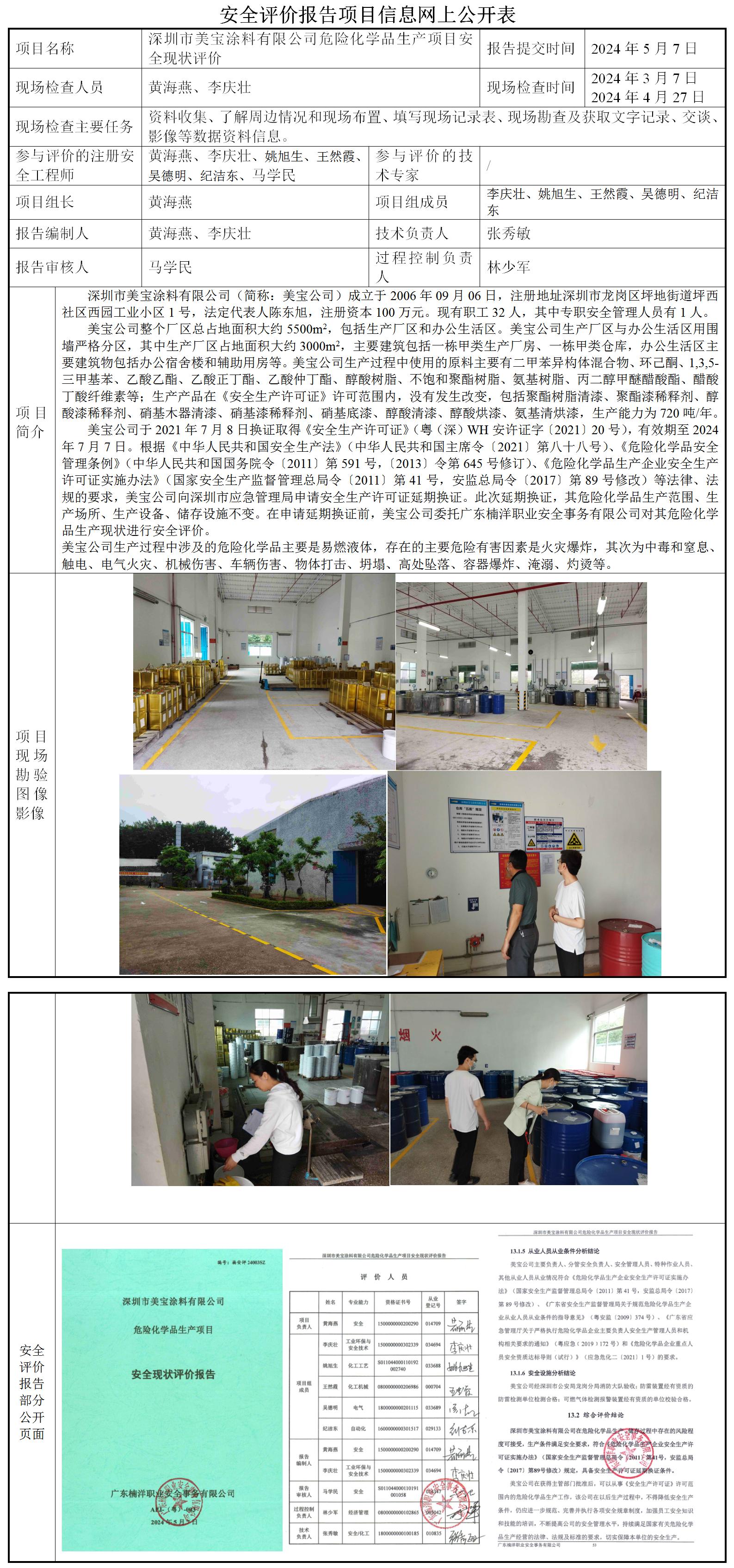 深圳市美宝涂料有限公司危险化学品生产项目安全现状评价
