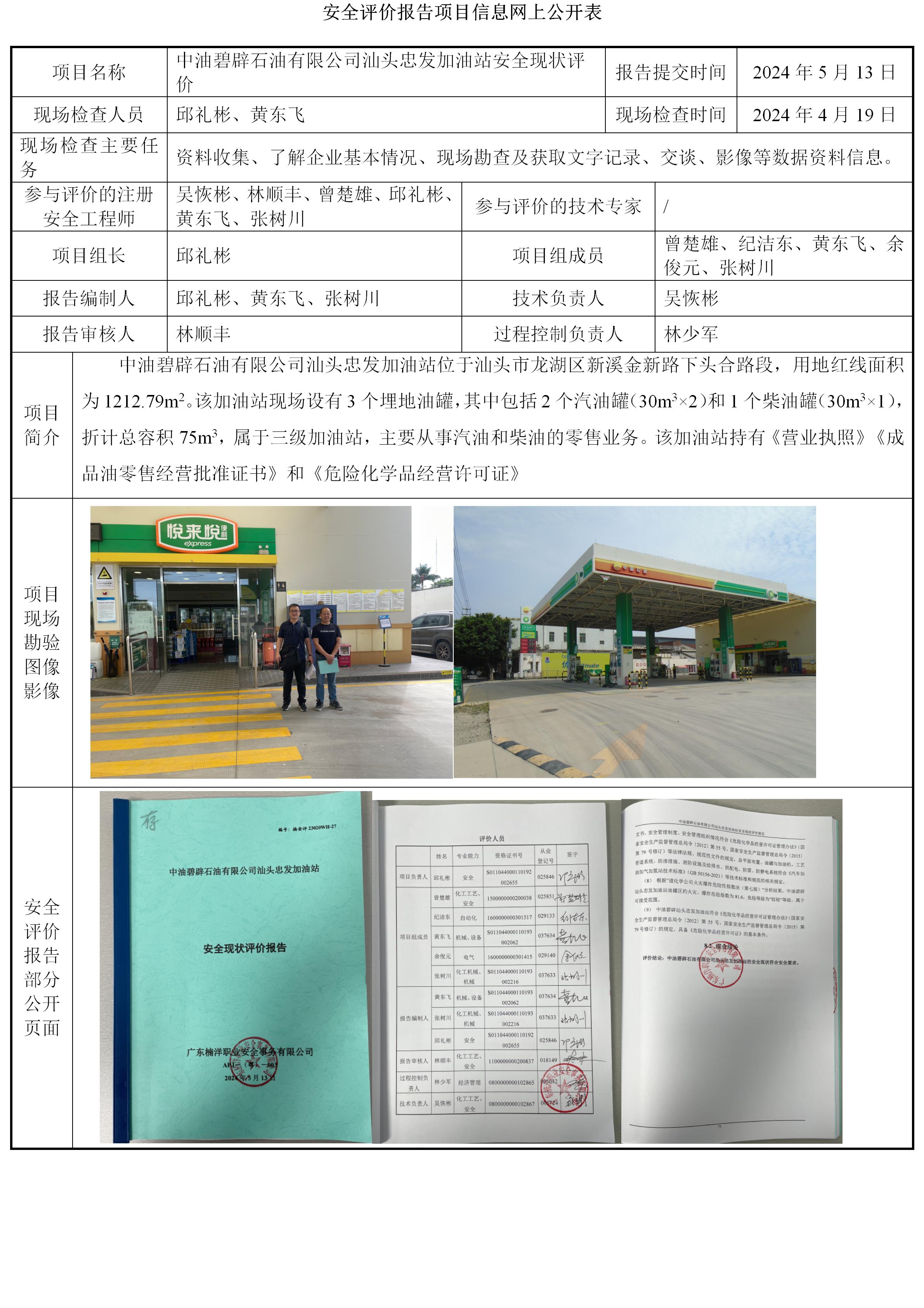 中油碧辟石油有限公司汕头忠发加油站安全现状评价