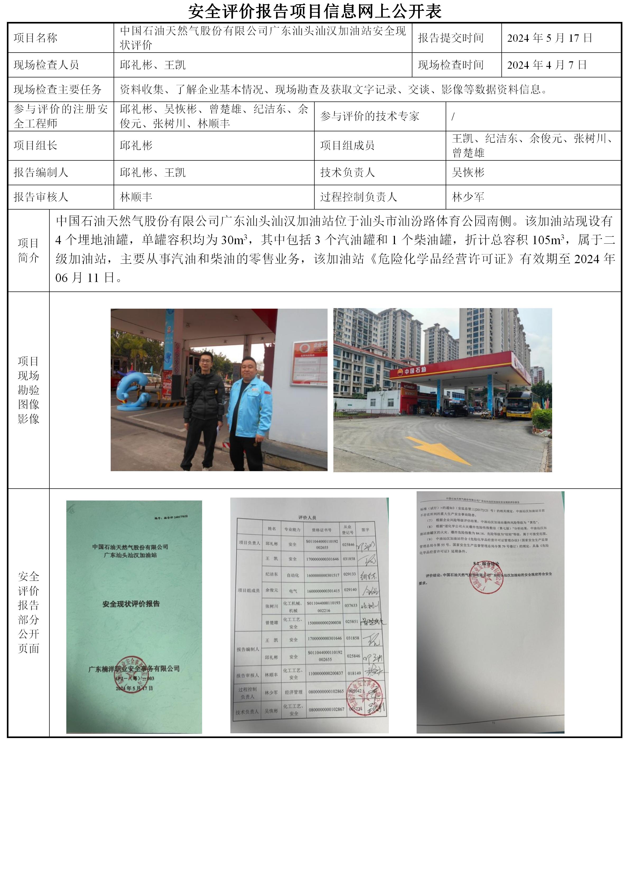 中国石油天然气股份有限公司广东汕头汕汉加油站安全现状评价