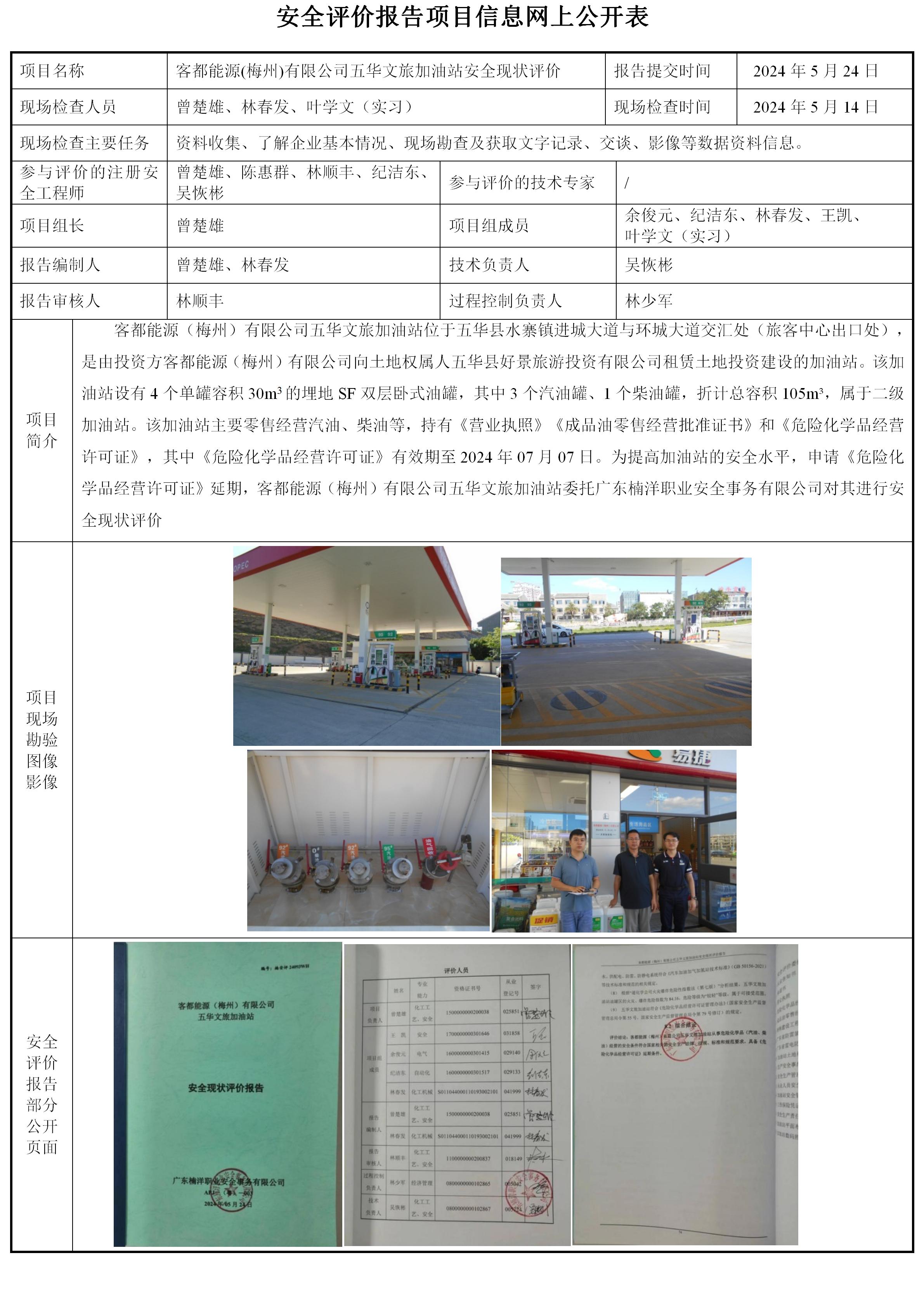 客都能源(梅州)有限公司五华文旅加油站安全现状评价