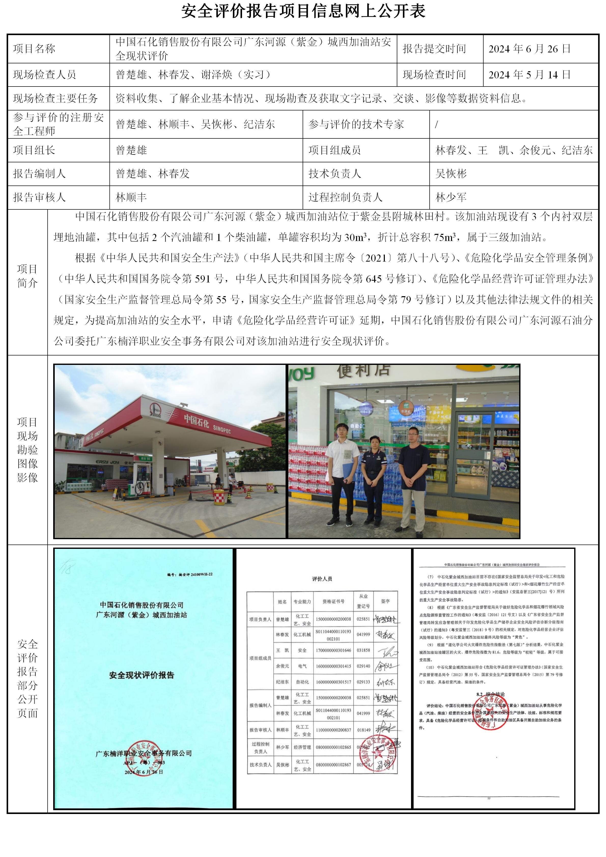 中国石化销售股份有限公司广东河源(紫金)城西加油站安全现状评价