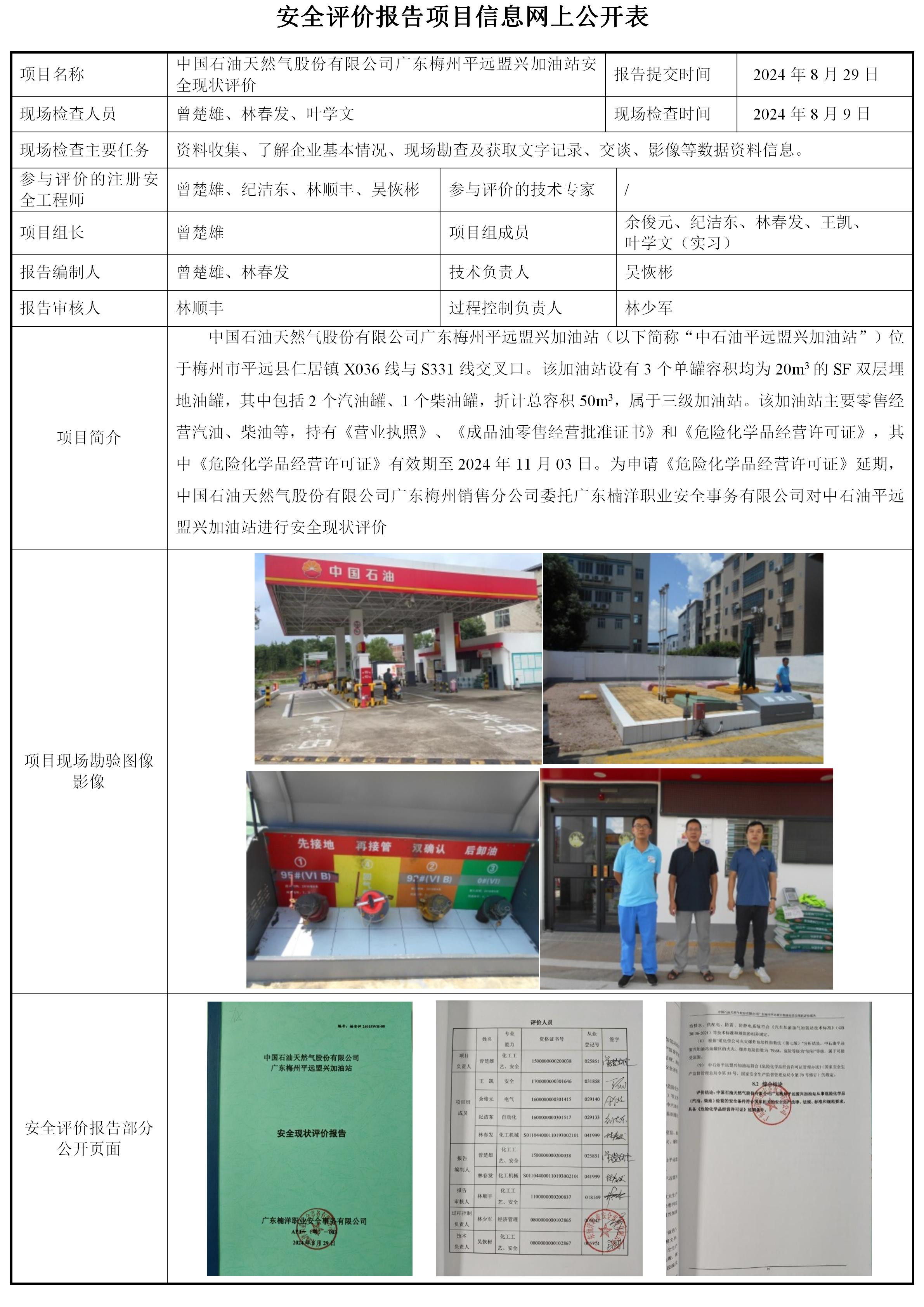 中国石油天然气股份有限公司广东梅州平远盟兴加油站安全现状评价