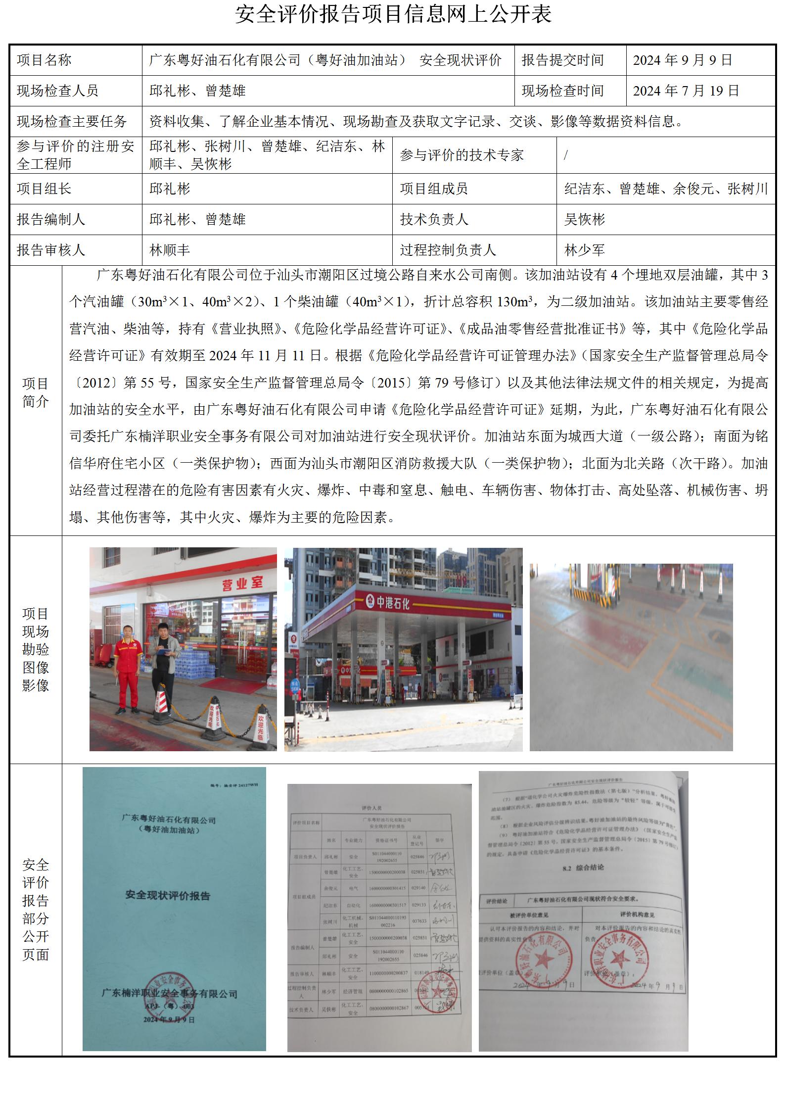 广东粤好油石化有限公司(粤好油加油站) 安全现状评价