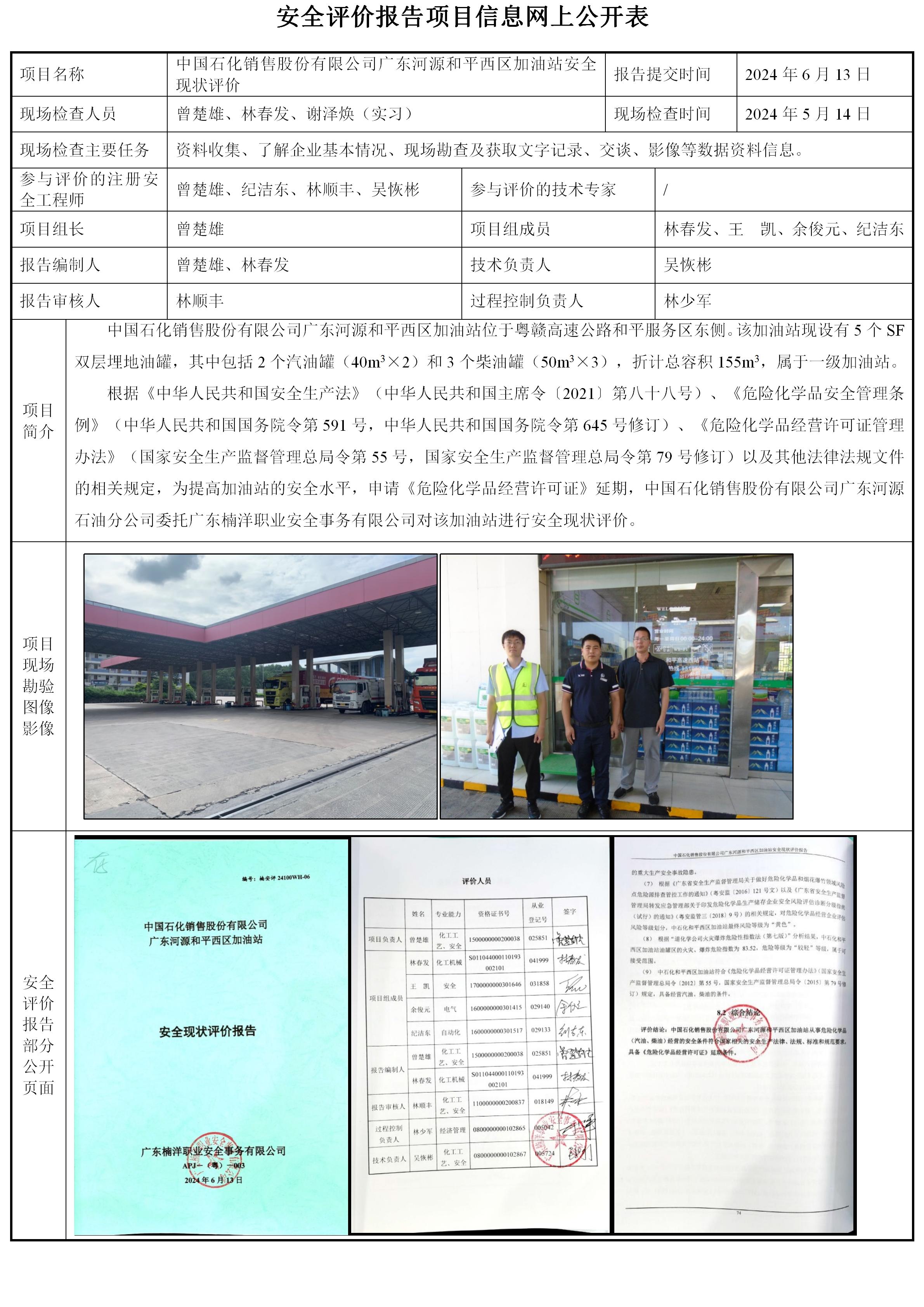 中国石化销售股份有限公司广东河源和平东区加油站安全现状评价
