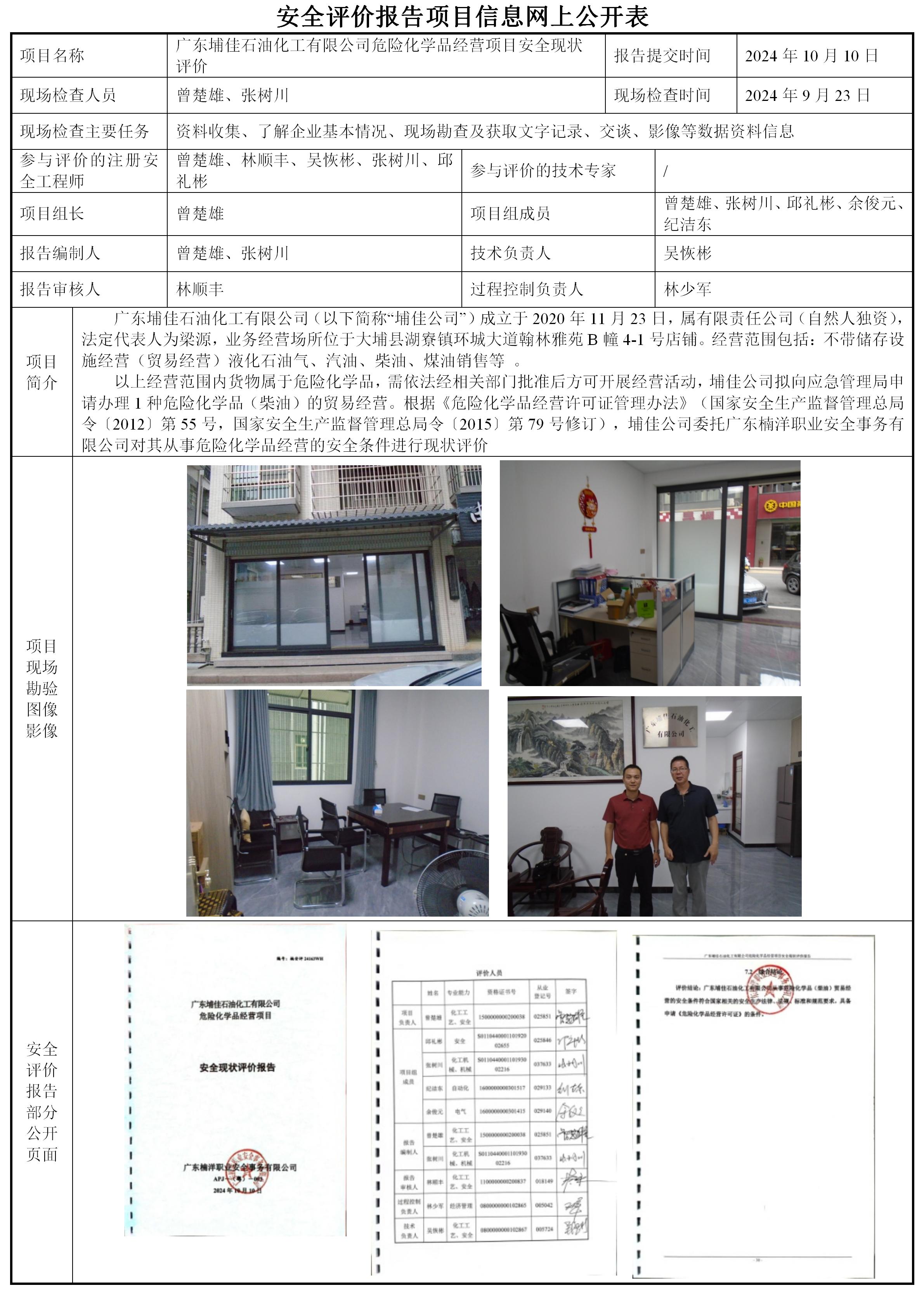 广东埔佳石油化工有限公司危险化学品经营项目安全现状评价