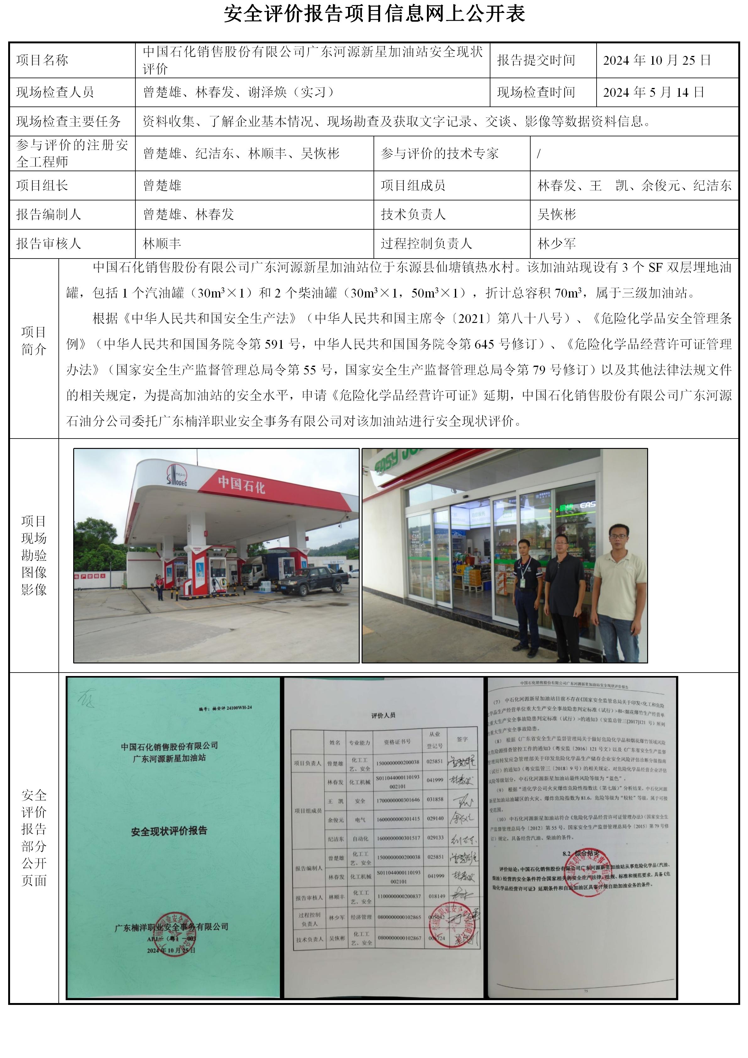 中国石化销售股份有限公司广东河源新星加油站安全现状评价
