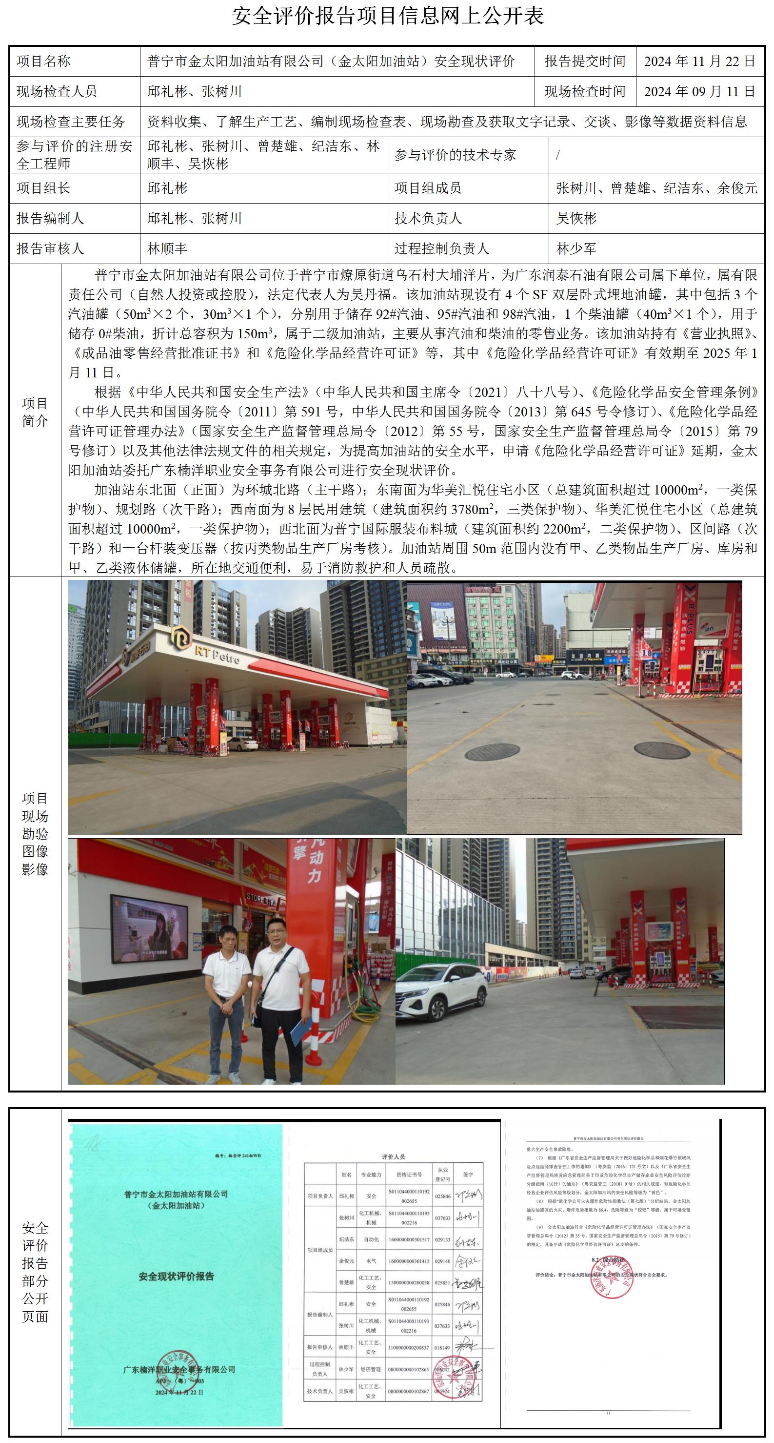 普宁市金太阳加油站有限公司(金太阳加油站)安全现状评价