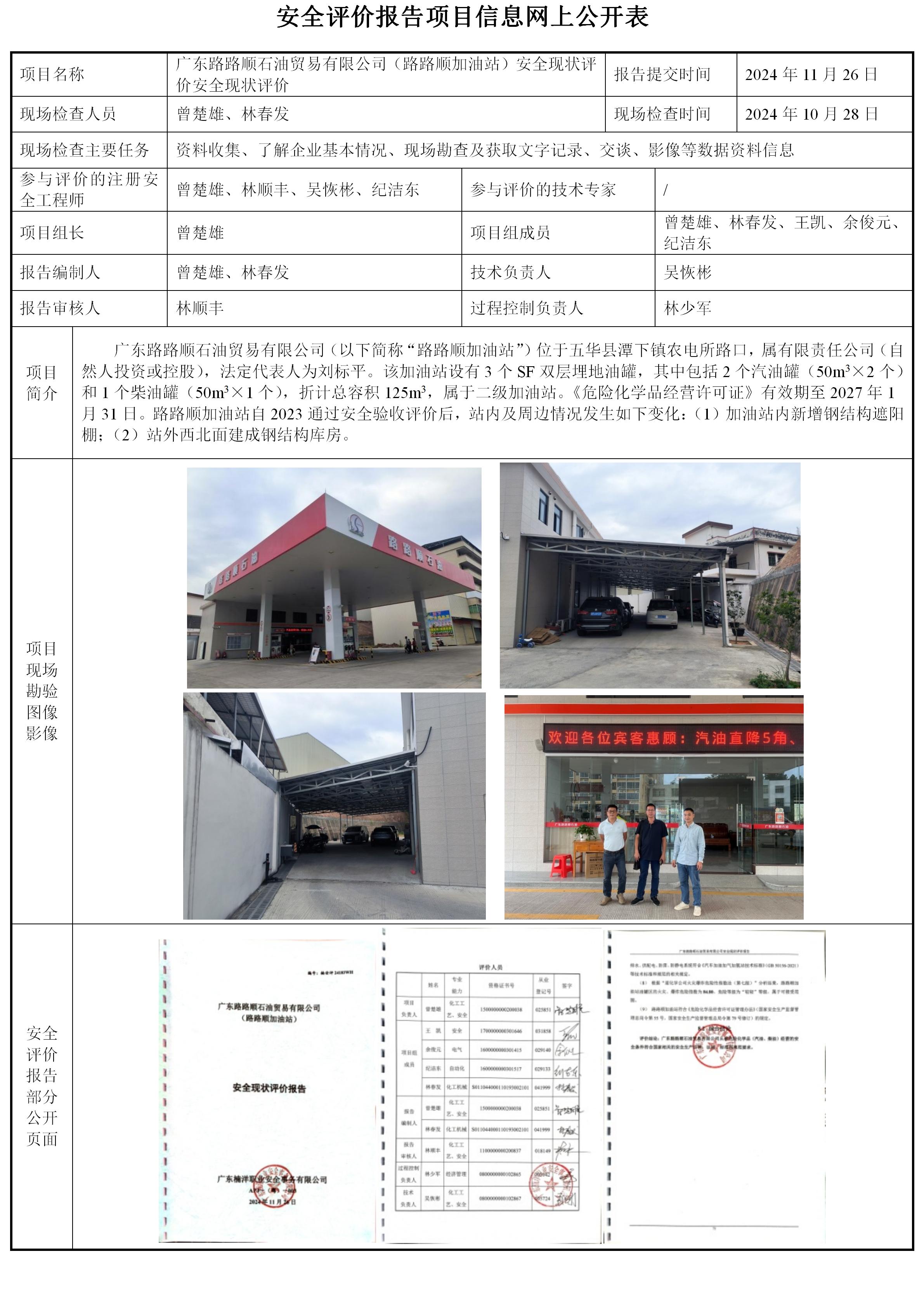 广东路路顺石油贸易有限公司(路路顺加油站)安全现状评价