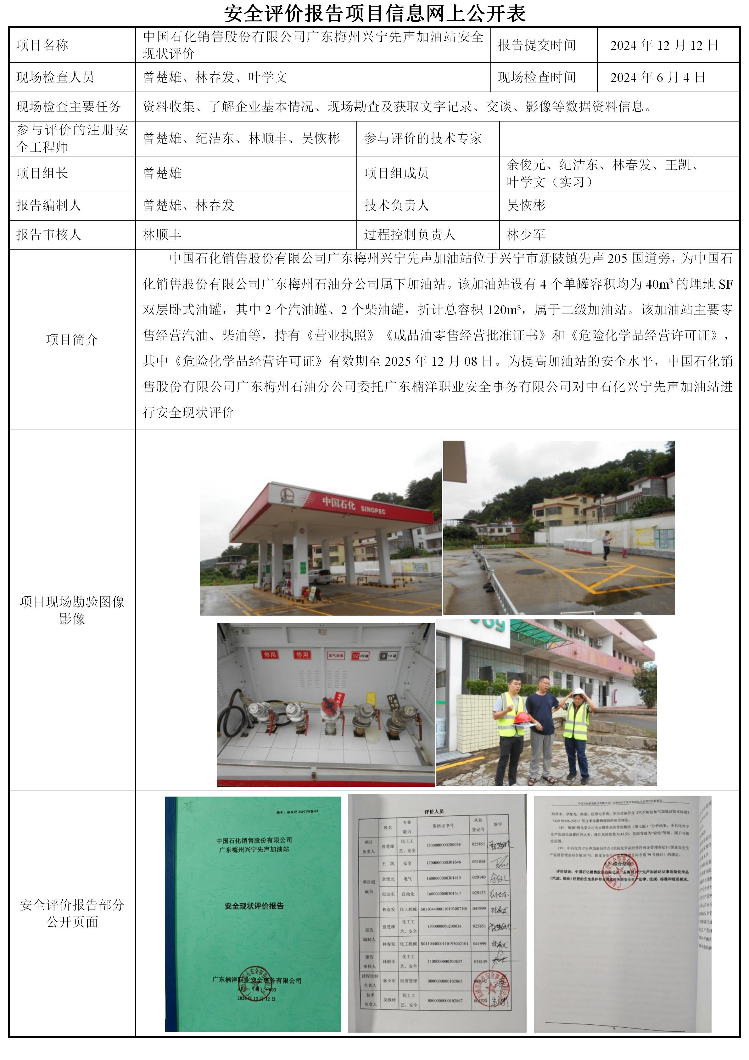 中国石化销售股份有限公司广东梅州兴宁先声加油站安全现状评价