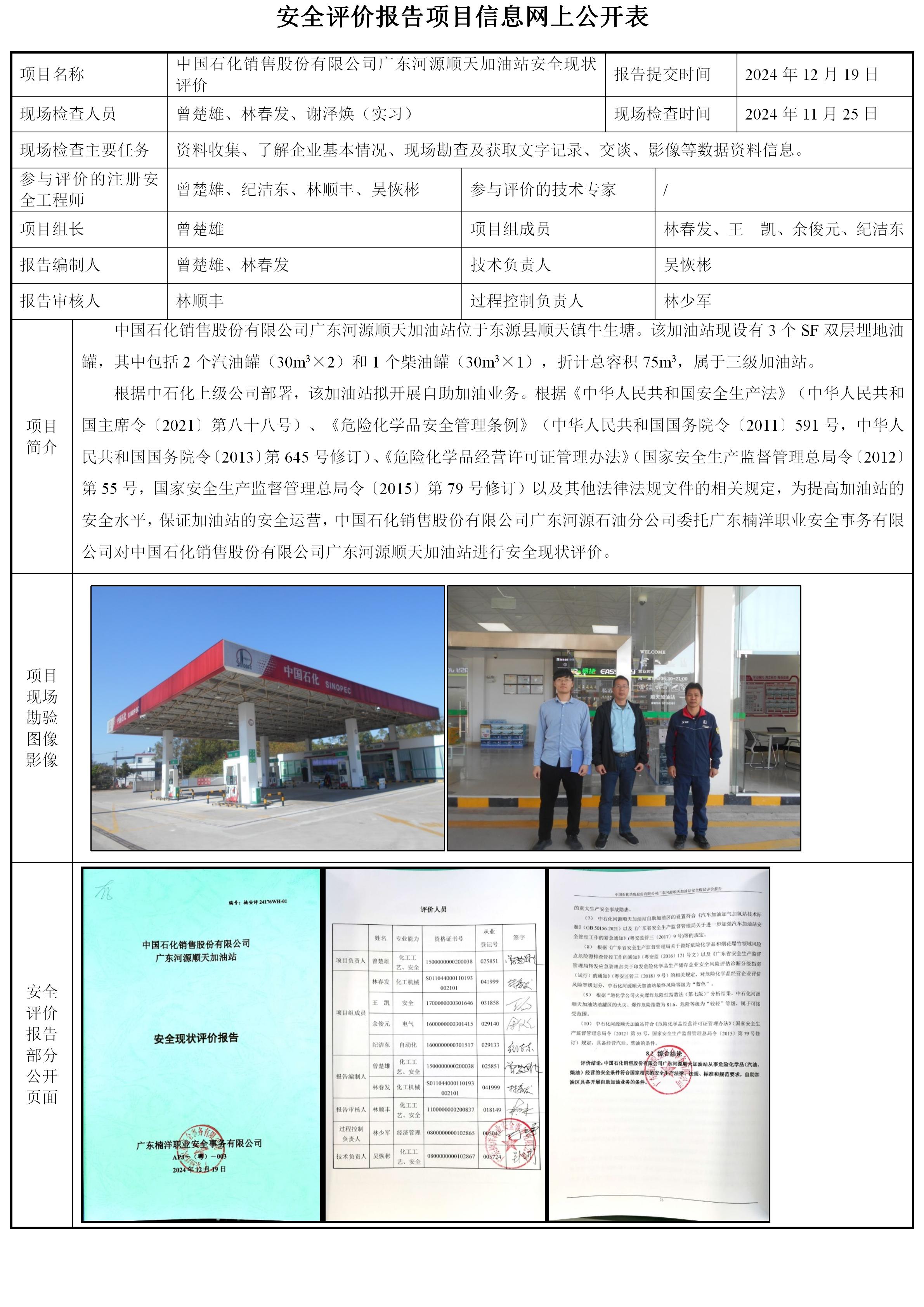 中国石化销售股份有限公司广东河源顺天加油站安全现状评价