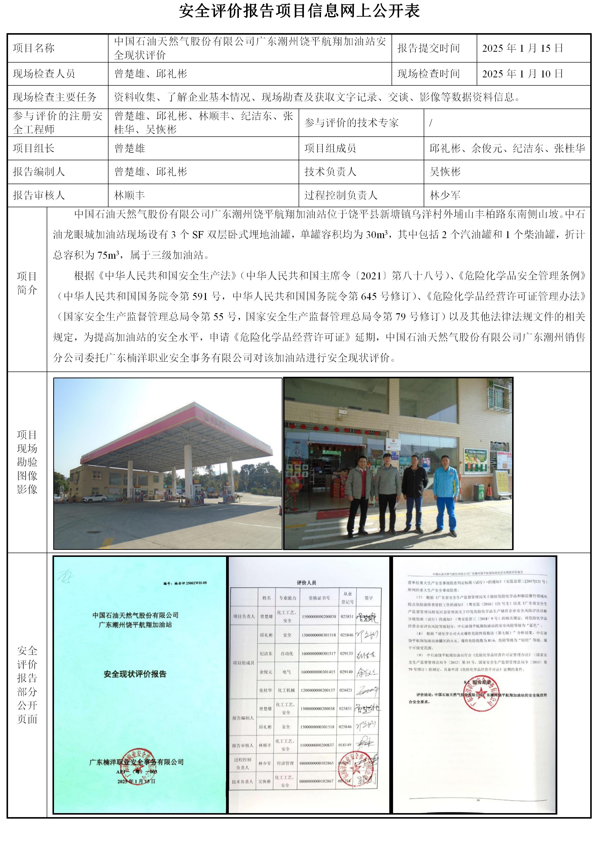 中国石油天然气股份有限公司广东潮州饶平航翔加油站安全现状评价