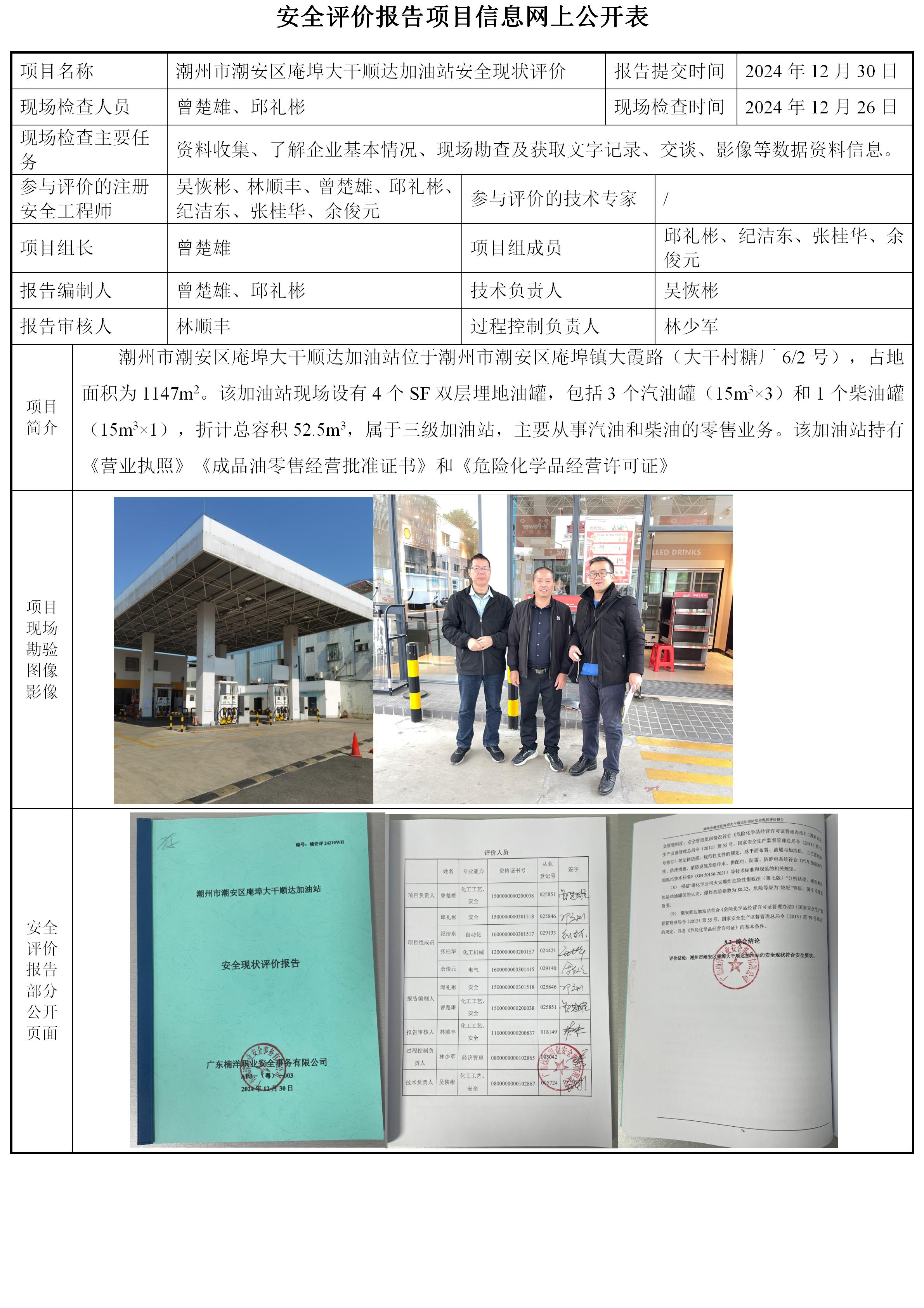 潮州市潮安区庵埠大干顺达加油站安全现状评价报告