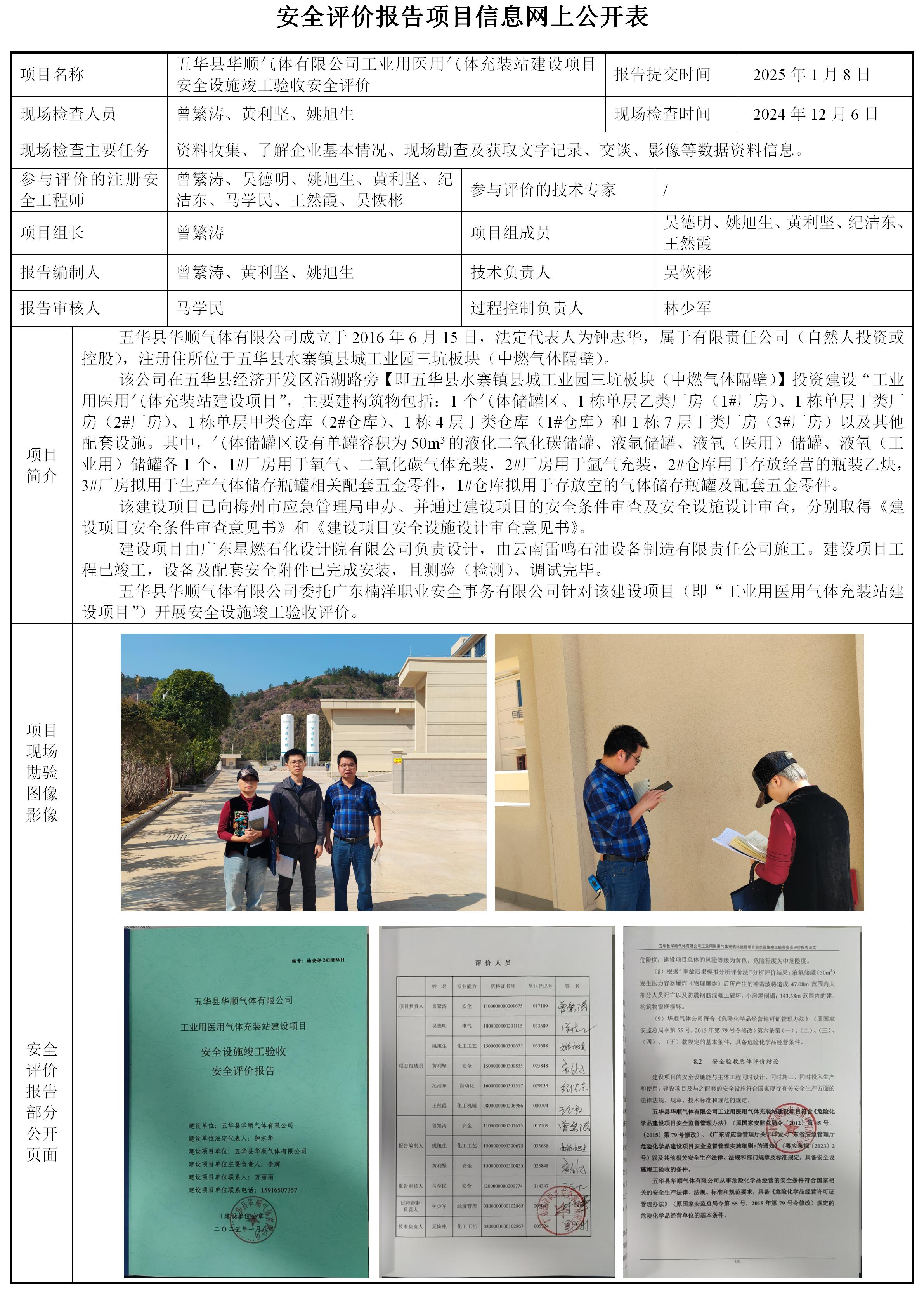 五华县华顺气体有限公司工业用医用气体充装站建设项目安全设施竣工验收安全评价
