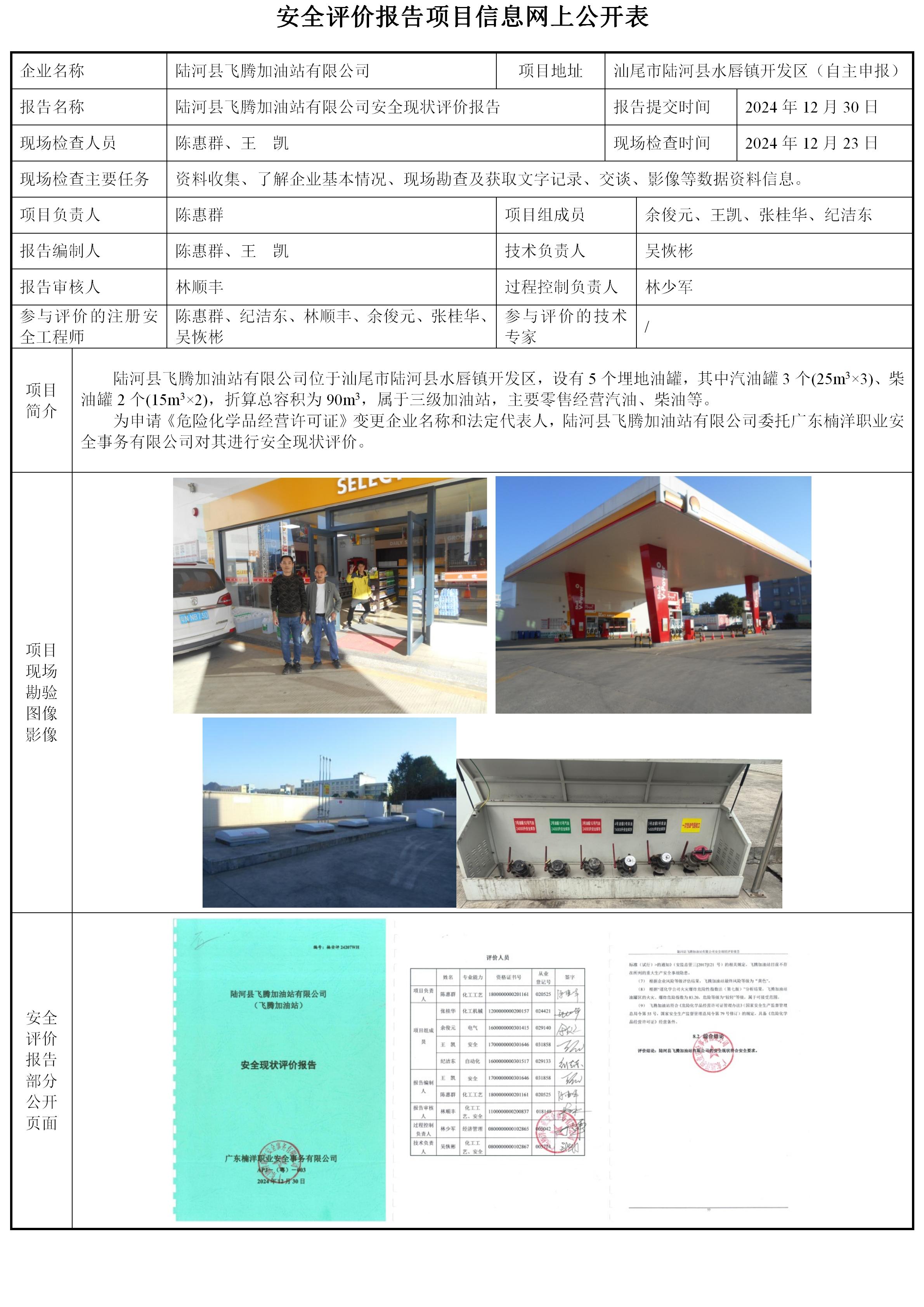 陆河县飞腾加油站有限公司(飞腾加油站)安全现状评价