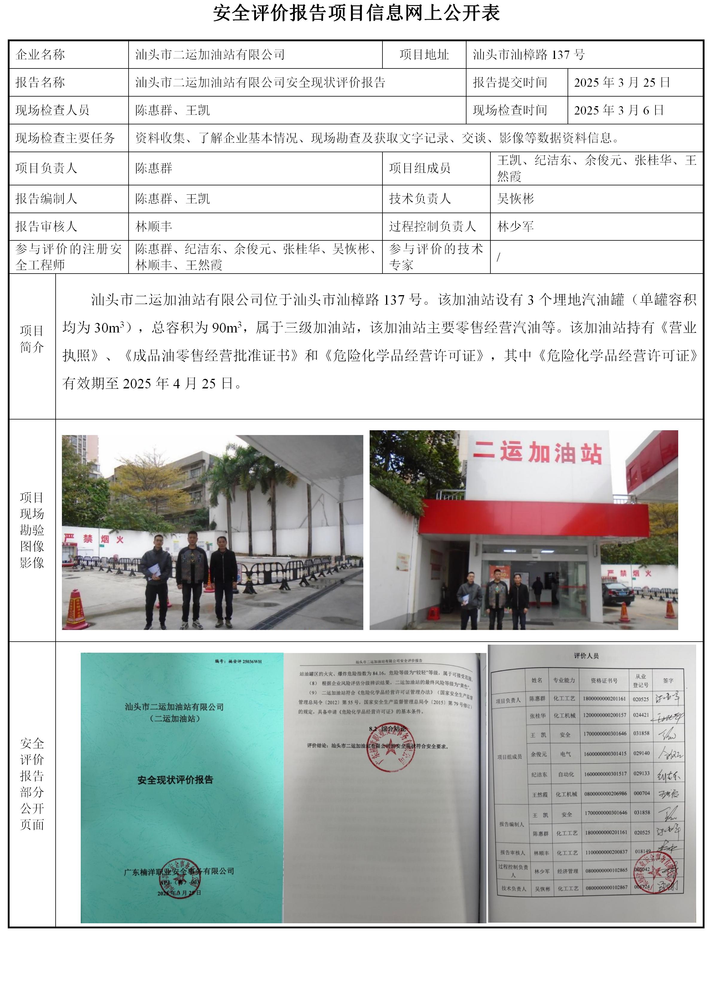 汕头市二运加油站有限公司(二运加油站)安全现状评价