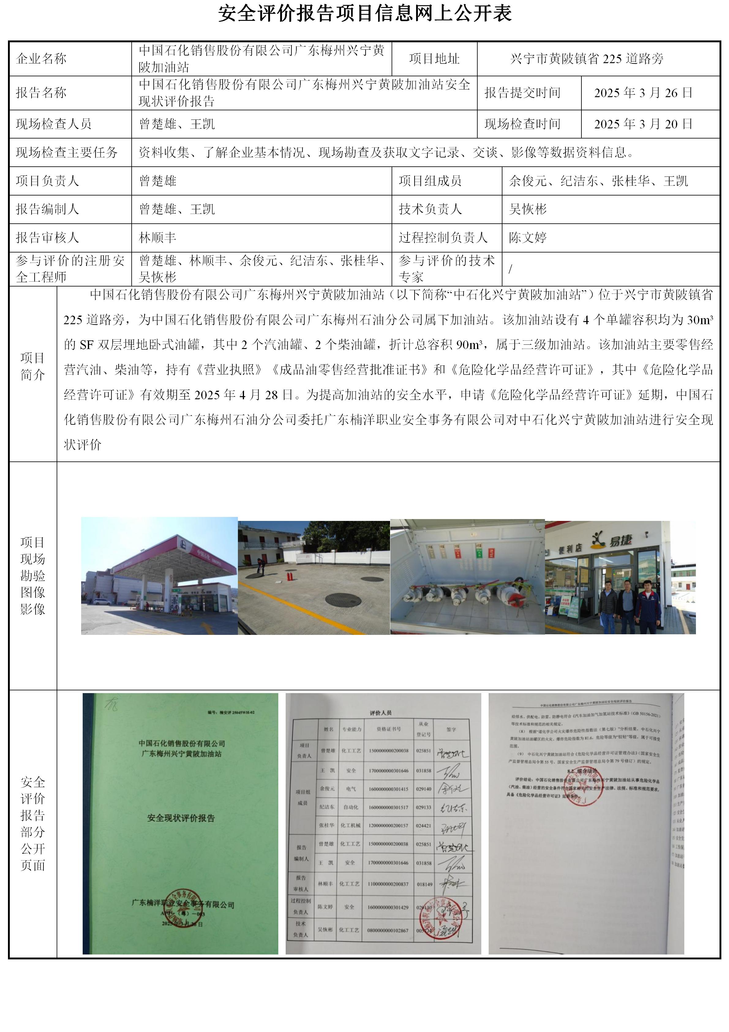 中国石化销售股份有限公司广东梅州兴宁黄陂加油站安全现状评价