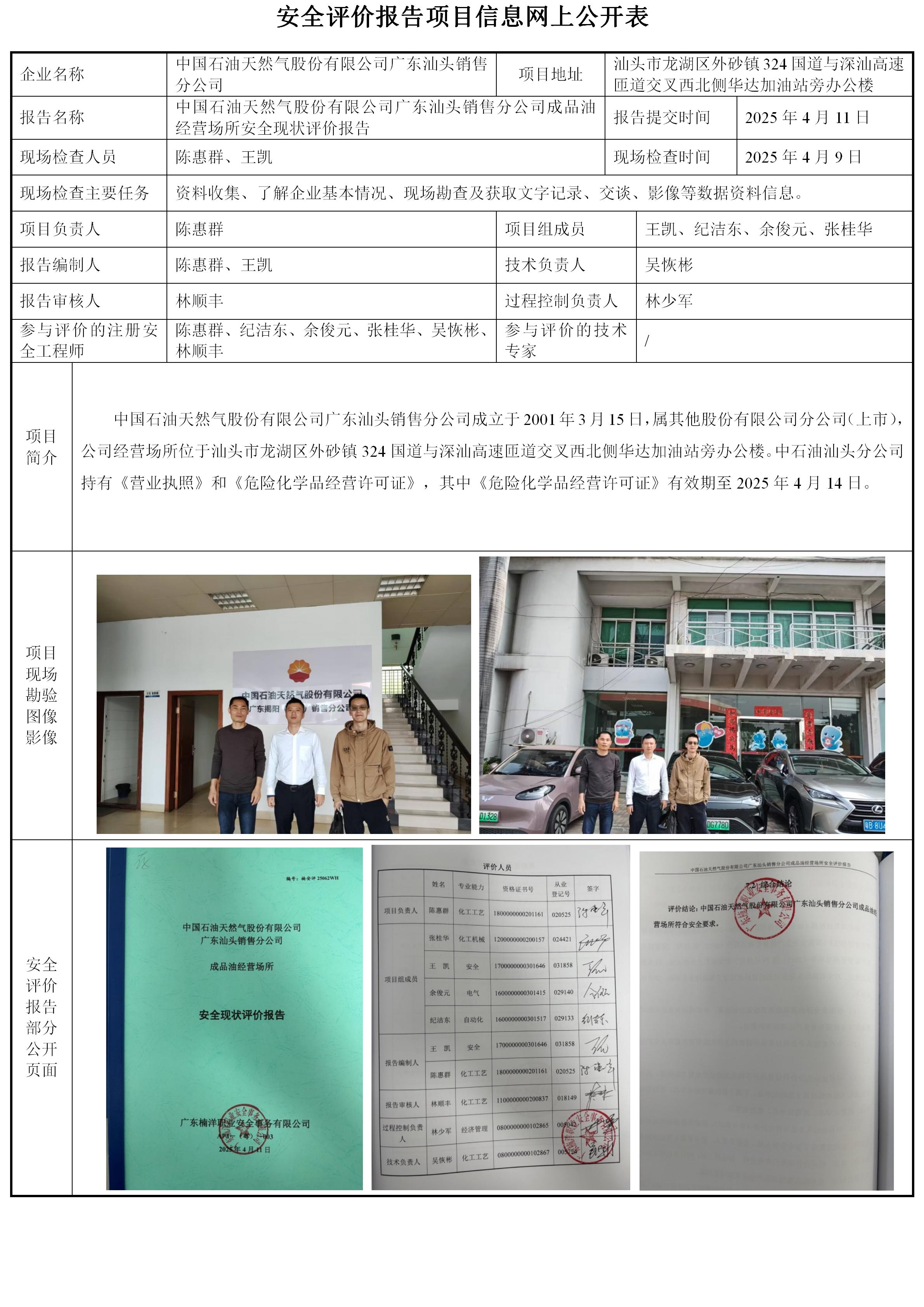 中国石油天然气股份有限公司广东汕头销售分公司成品油经营场所安全现状评价