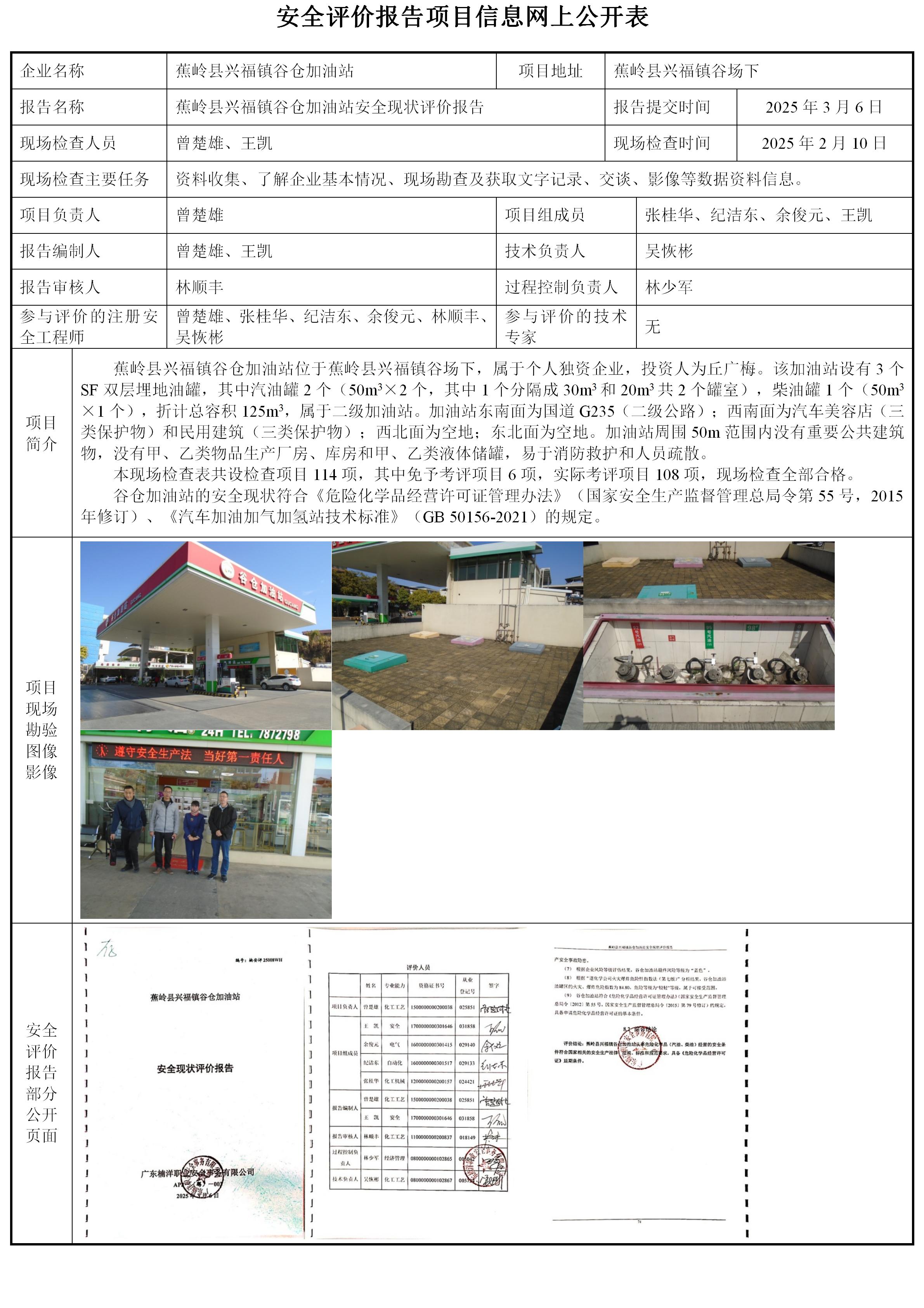 蕉岭县兴福镇谷仓加油站安全现状评价