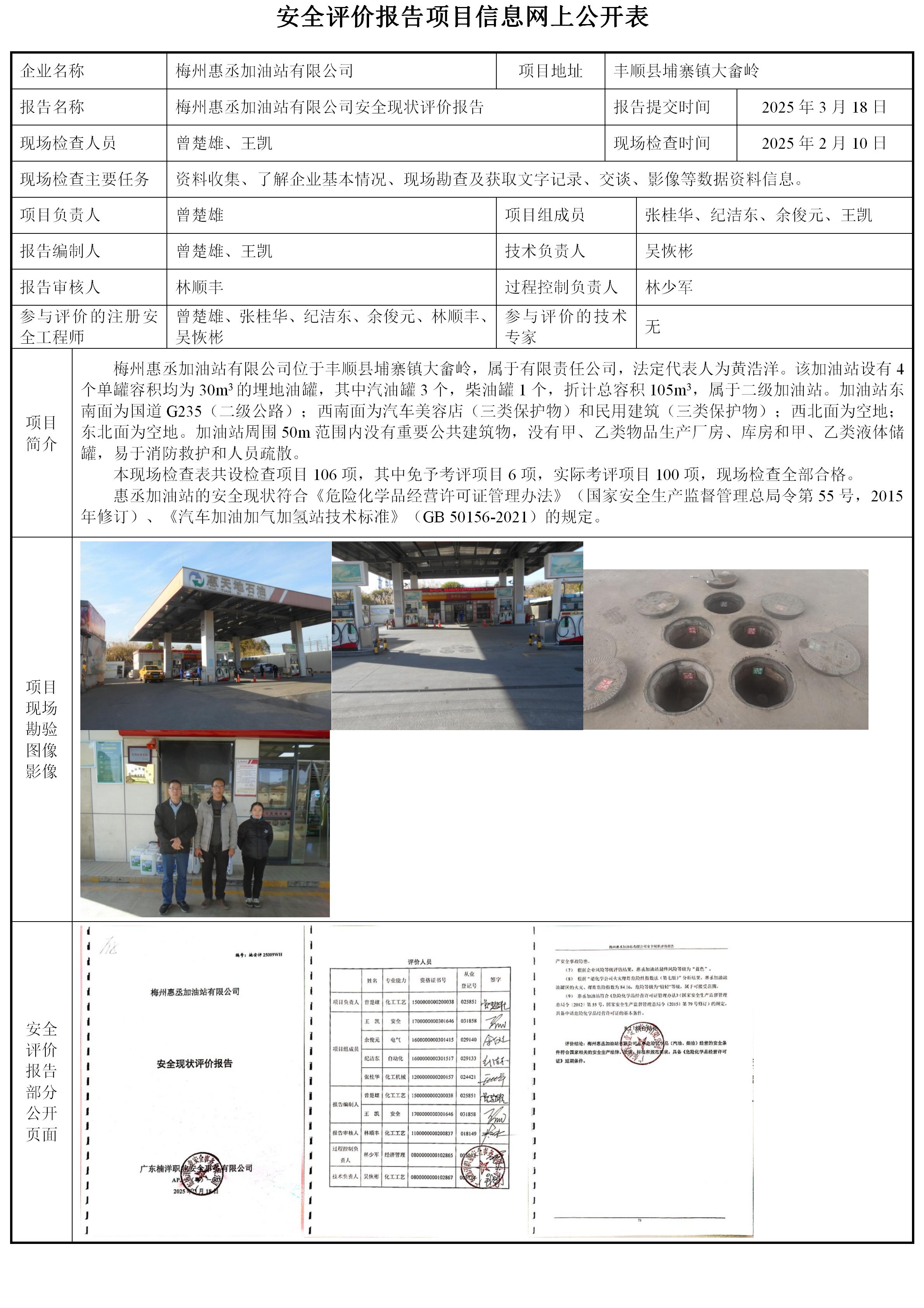 梅州惠丞加油站有限公司安全现状评价