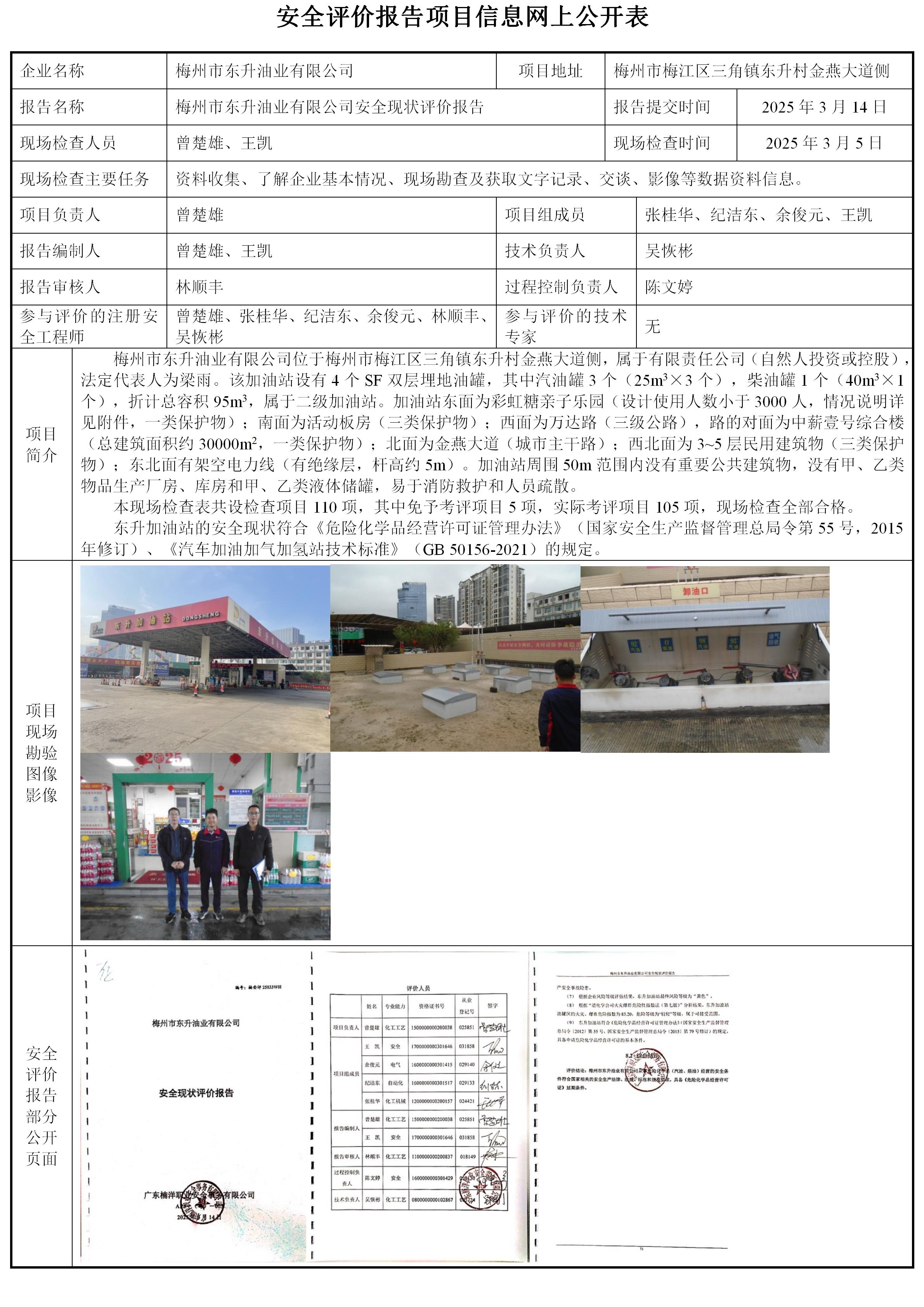 梅州市东升油业有限公司安全现状评价
