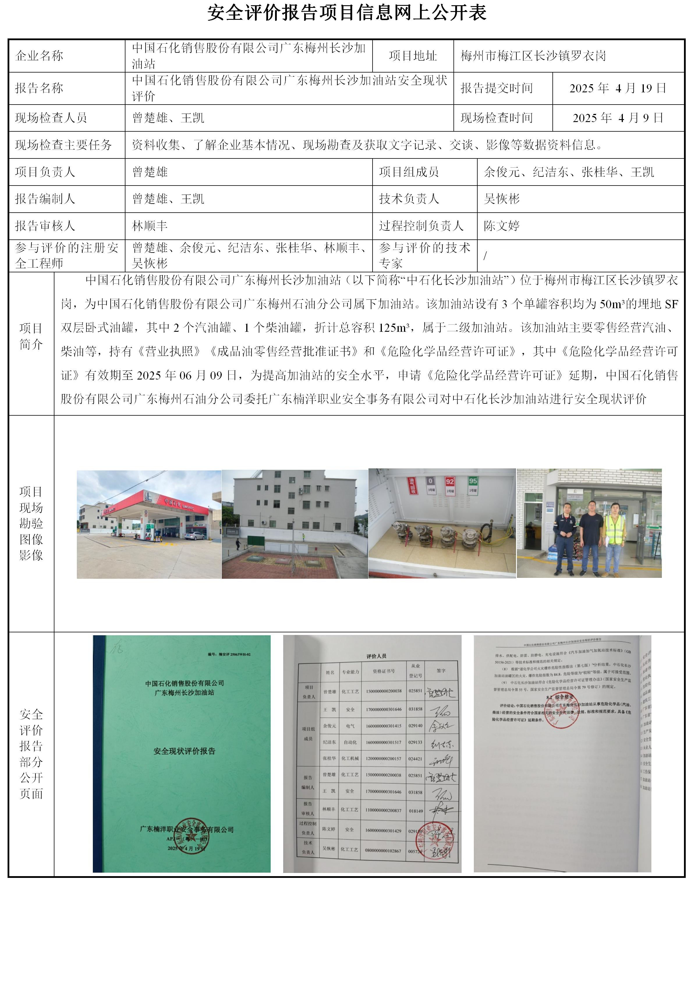 中国石化销售股份有限公司广东梅州长沙加油站安全现状评价